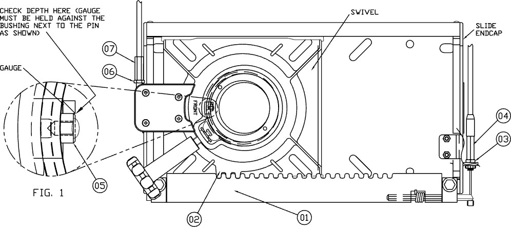 - Use the provided gauge (see fig. 1) to measure the position of the Swivel Lock Pin (05).