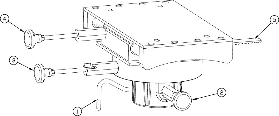 Loosen the Swivel Tension Handle (Item #1) to allow the seat slide to fit over the pedestal. Pull out on the Swivel Lock Handle, lower the slide onto the pedestal until fully seated, then rotate the seat until the handle locks into one of the pedestal’s slots.