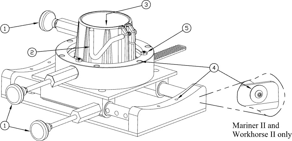 For Mariner and Mariner II slides ensure that the Swivel Tension Pin is tight at all times. Workhorse II slides require loosening of the handle for operation and only require the handle to be tight when desired
