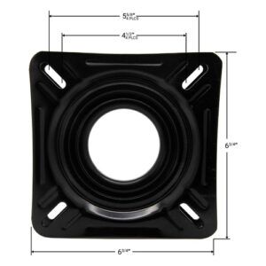 6-3/4″ square with 4-hole mounting pattern. 0-degree non-locking swivel rotates 360° in e-coat finish.