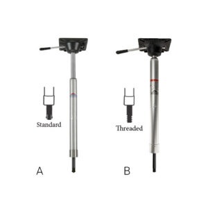Power-rise stand-up anodized aluminum post adjusts from 22″ to 29-1/2″”. Cast aluminum seat mount with black textured powdercoat finish. 5″ x 5″ bolt pattern and 3° tilt. Aluminum-clad gas cylinder inner post.