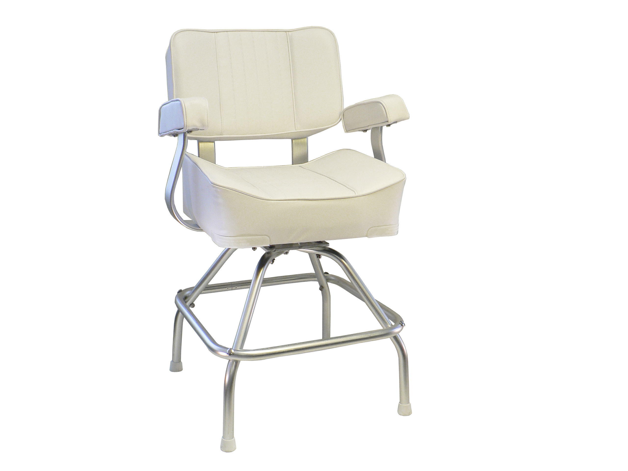 Seat rotates 360°. Chair stand has 1″ anodized legs with rubber tip guards, anodized aluminum arm and back support bars, and plastic durable substrate. The Deluxe Captain’s Chair Package is the perfect addition to any boat. Designed with convenience in mind, the tall chair stand is easy to pick up and move where and when you need it. With the 360° rotating swivel mount, you can choose which direction to face at any given time. Durable anodized aluminum arms and back support bars provide corrosion resistance and strength to last for years to come. Upholstered in sleek marine grade vinyl that protects against water damage, mold, and harmful UV rays, this chair promises comfort and quality for lasting enjoyment! The package includes (1) Deluxe Captain’s Chair with Armrests and (1) 24-inch Deluxe Captain’s Chair Stand with Swivel Mount.