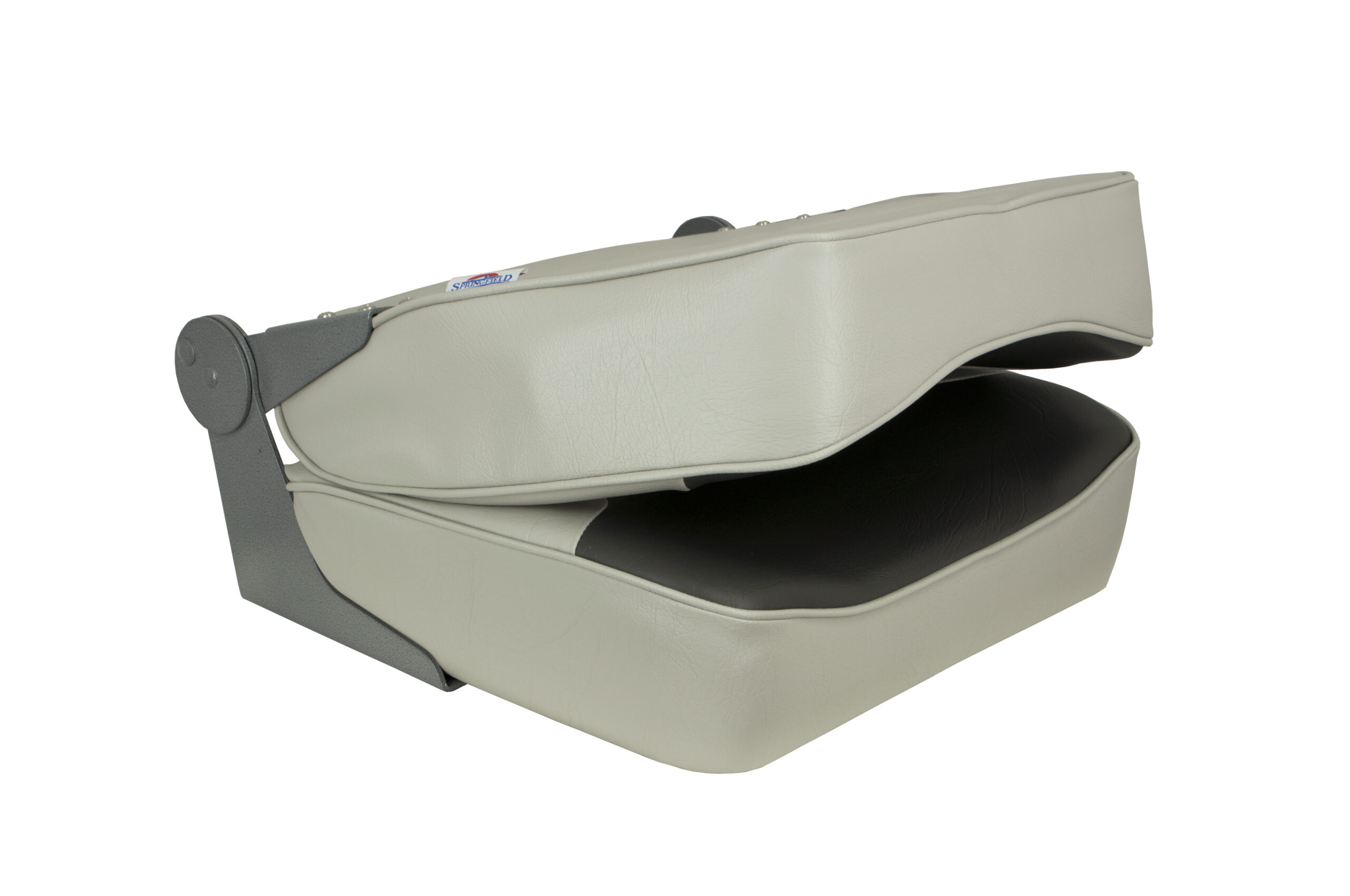 Engineered for enhanced comfort and support, this extra-wide high-back seat is built to accommodate a broader body frame with confidence and durability. Upholstered in marine-grade vinyl with plush foam padding, it delivers lasting comfort in demanding marine environments. Heavy-duty, powder-coated pinchless hinges and a secure back strap keep the seat firmly in place when folded down, while its universal 5″ x 5″ mounting pattern ensures broad compatibility.