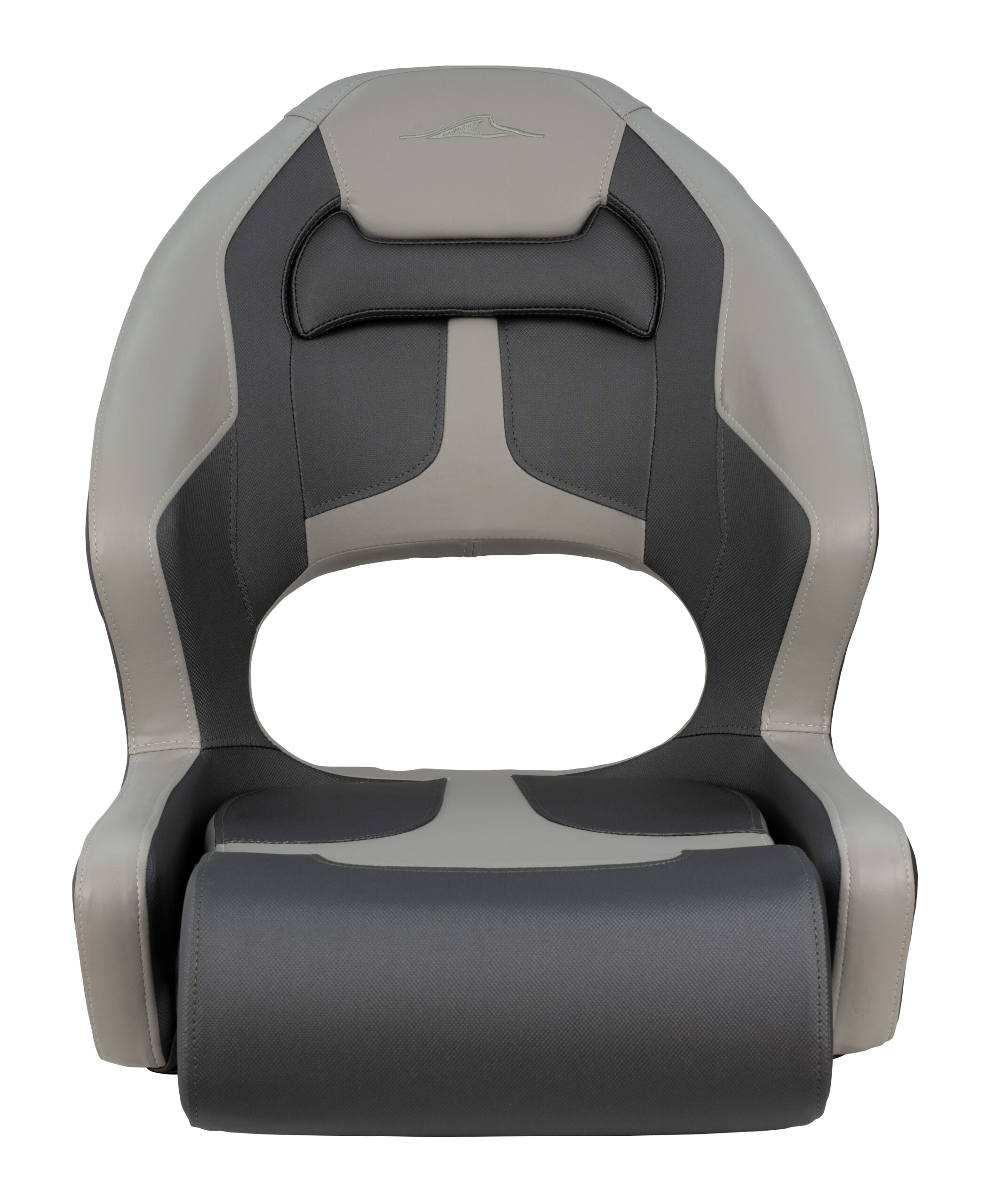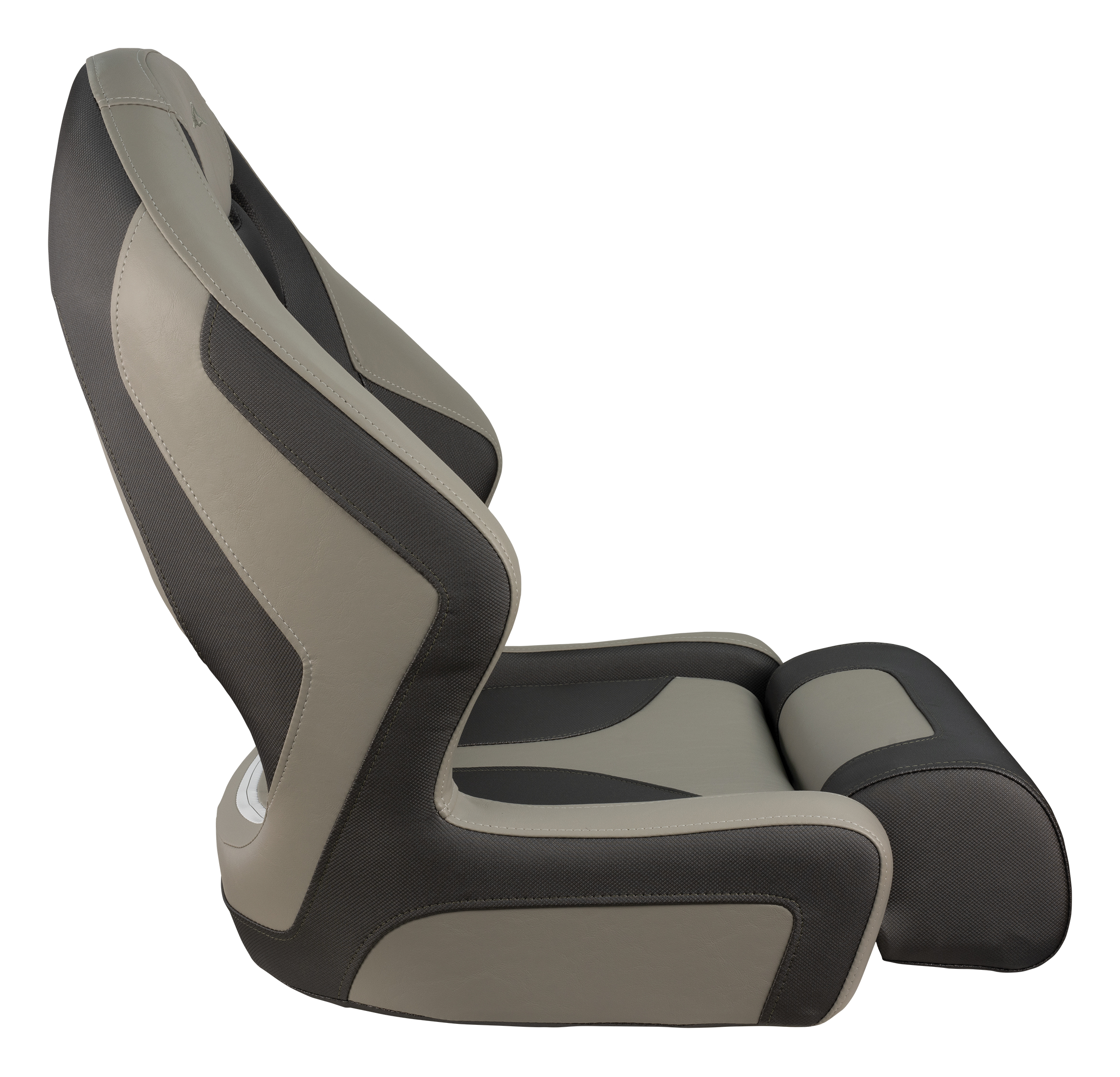 Comfort meets performance with the Deluxe Sport Flip-Up seat that doubles as a lean-to with a simple lift of the bolster. The durable yet lightweight blow-molded seat frame is cushioned with high-density foam formed to cradle the back for ergonomic support. Premium, marine grade vinyl protects the seat from the outdoor elements and keeps the carbon fiber charcoal and light gray upholstery pristine for years to come. This seat can be easily attached to most standard swivel and slide mounts for easy installation.