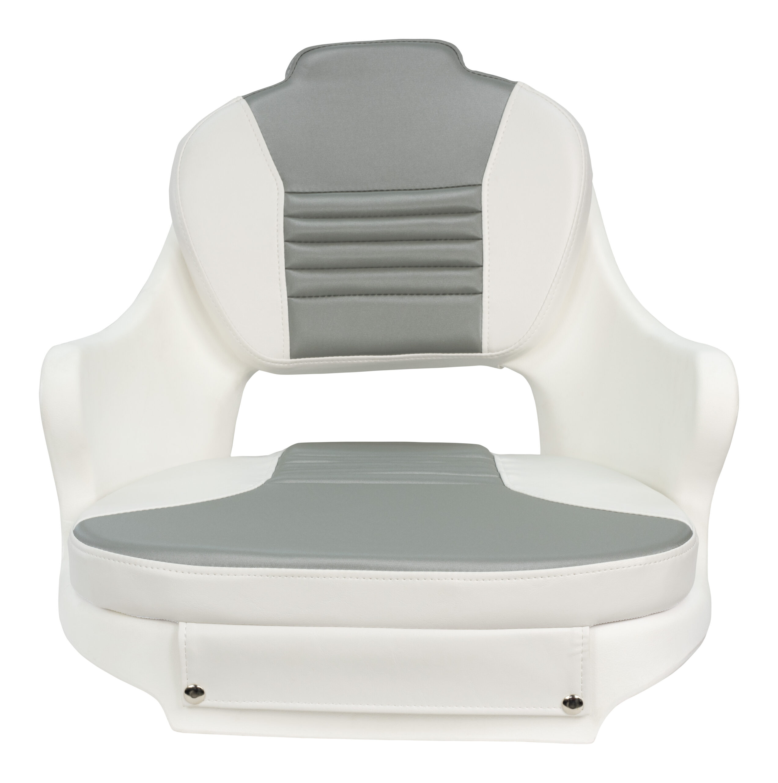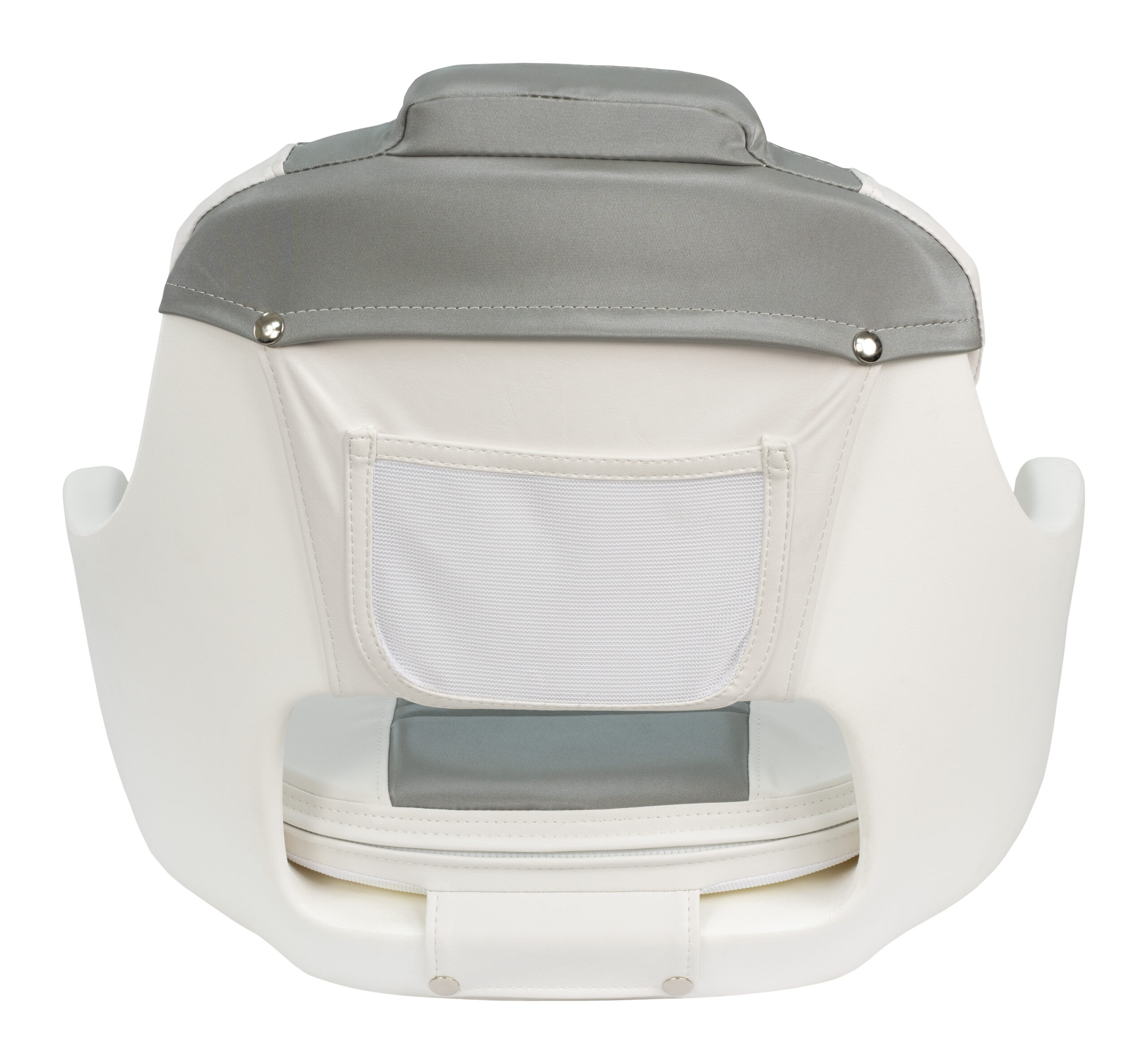 One piece white molded shell, made from LLDPE plastic with UV inhibitors for years of carefree use. Cushions are made from plush foam padding covered with marine-grade vinyl. Designed with heat seal channels and quick-dry construction. Cushions snap easily to the seat. Universal mounting plate or high-strength aluminum adds structural support to rotational molded seats.