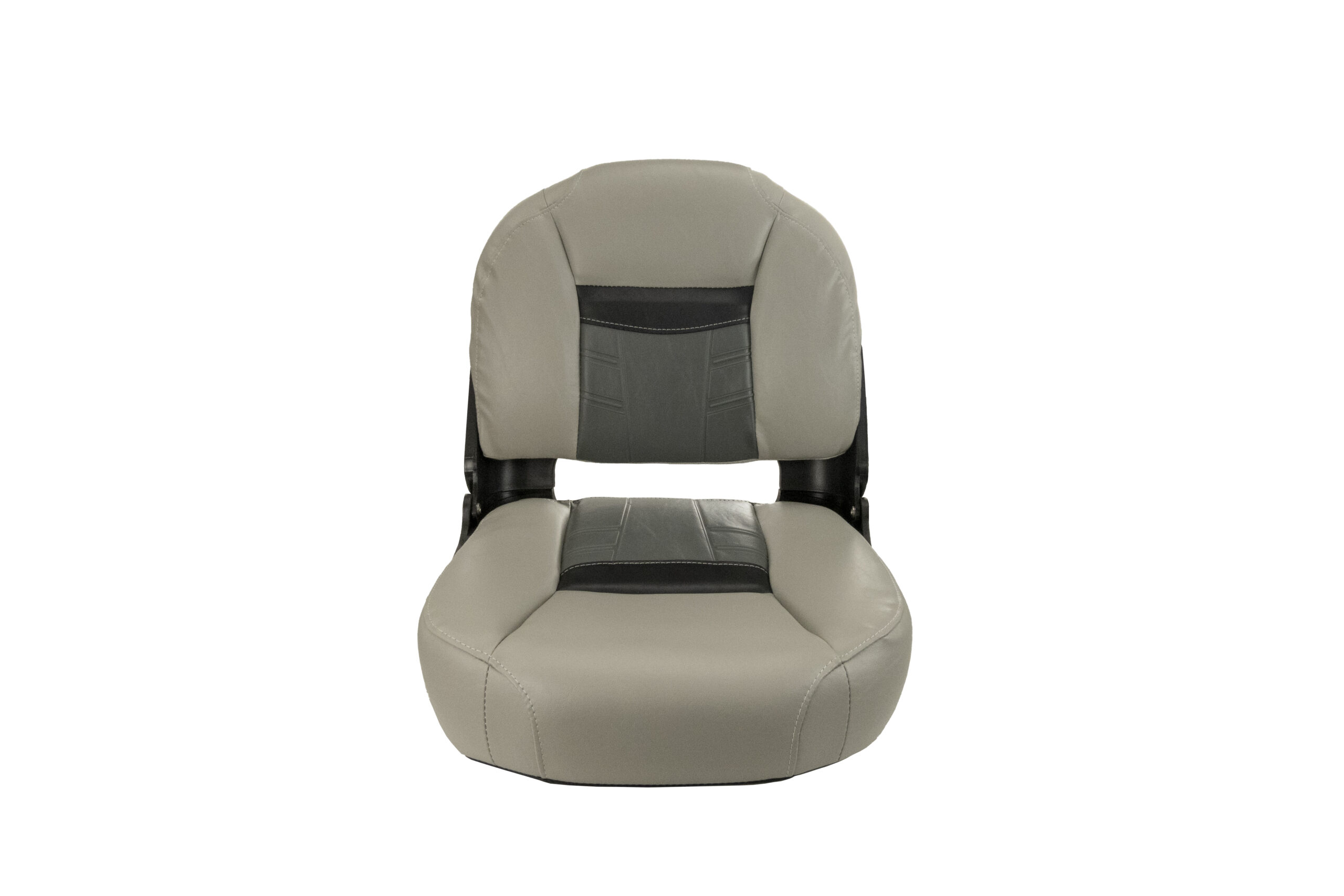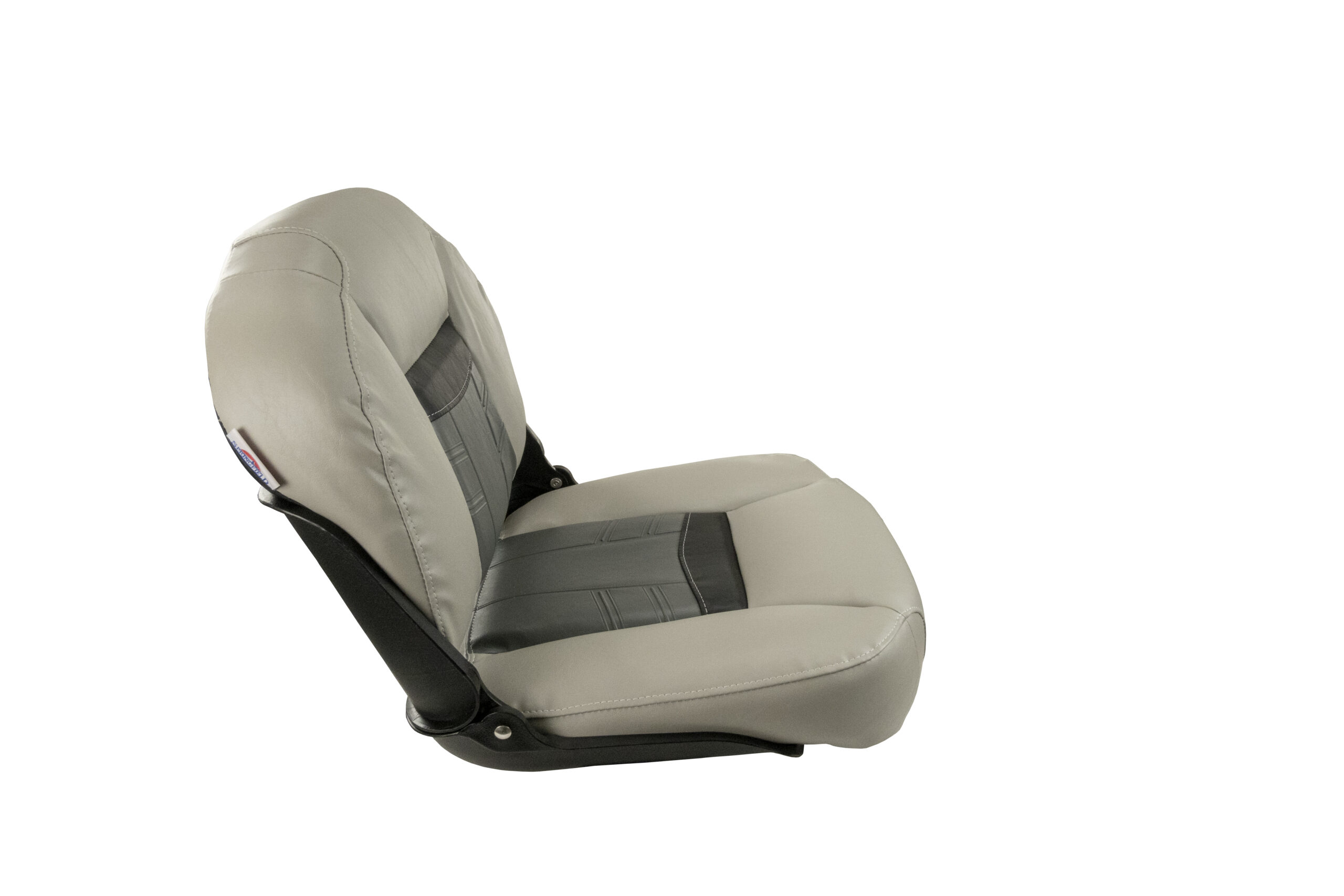 Injection molded seats with interlocking hinge for greater structural support, folds down easily. Extra wide seat with high quality synthetic boat fabric for all day comfort that features snap-on cushions. T-nuts installed into seat for better mounting durability. Universal 5″ x 5″ mounting pattern.