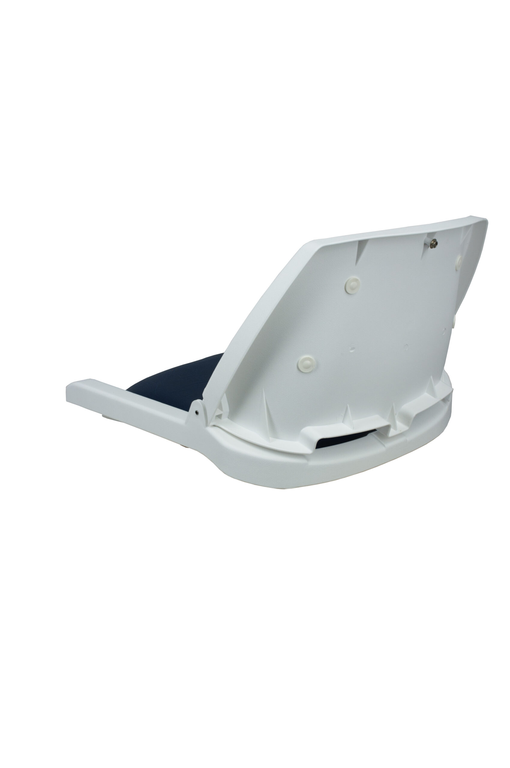 Super strong copolymer shell with extra wide contoured seat and curved back. Durable strap holds seat closed when folded down. White shell with high-quality marine-grade blue cushions. Universal mounting pattern: 5.25″ x 5.25″.