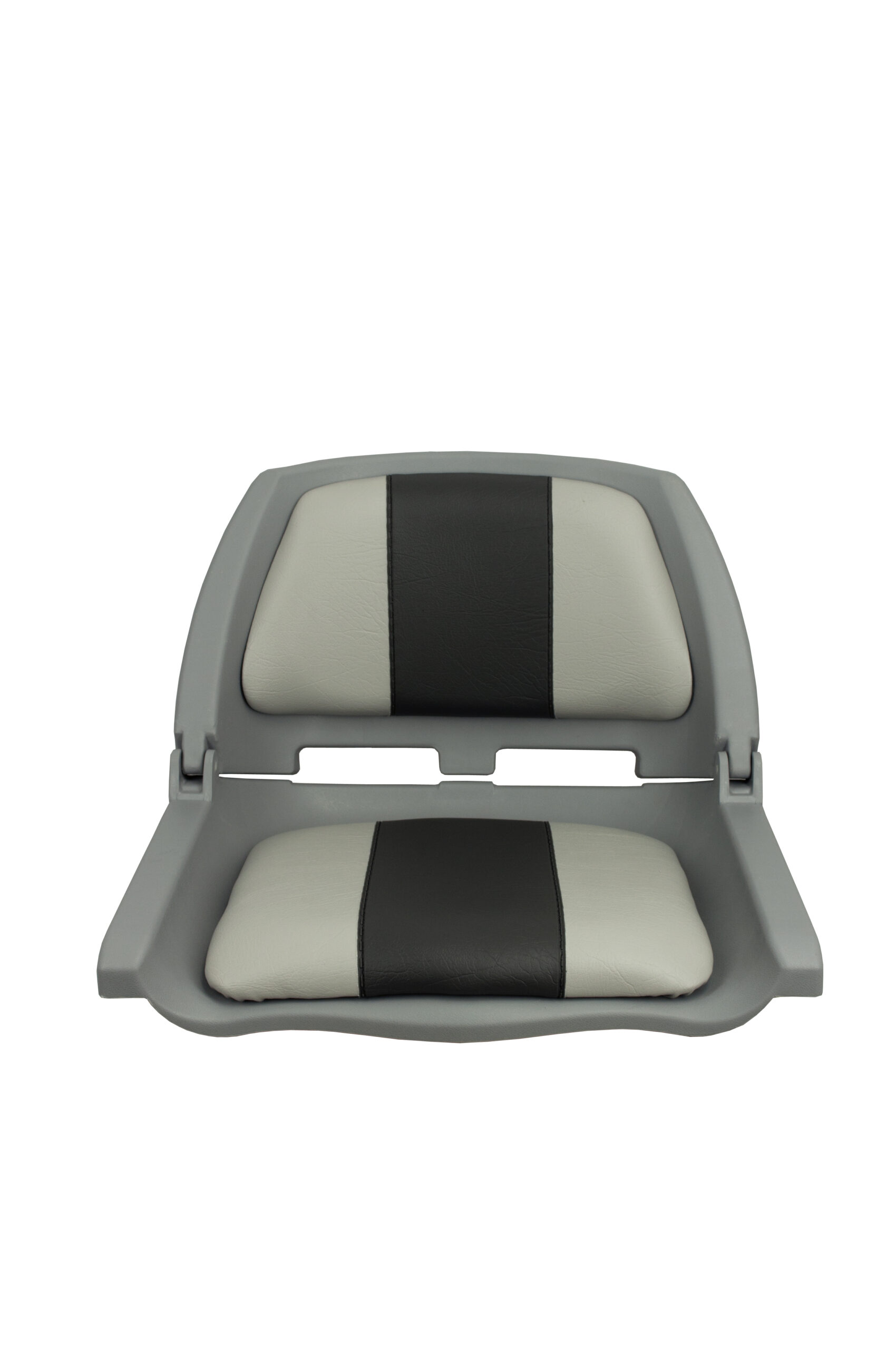 Super strong copolymer shell with extra wide contoured seat and curved back. Durable strap holds seat closed when folded down. Gray shell with high-quality marine-grade gray and charcoal cushions. Universal mounting pattern: 5.25″ x 5.25″.