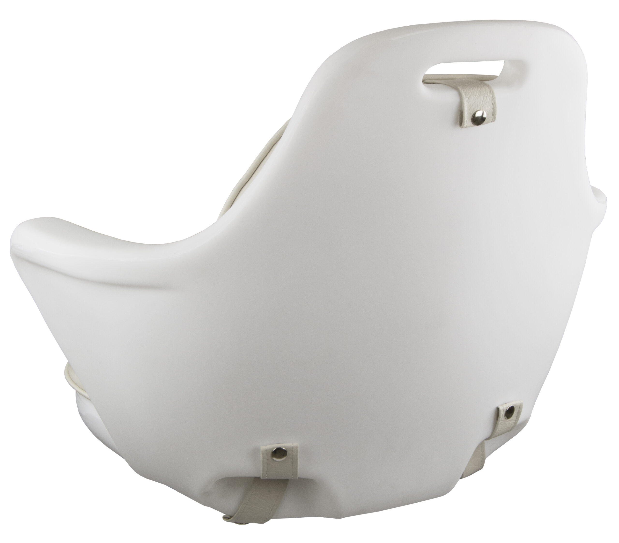 One piece white molded shell, made from LLDPE plastic with UV inhibitors for years of carefree use. Cushions are made from plush foam padding covered with marine-grade vinyl. Designed with heat seal channels and quick-dry construction. Cushions snap easily to the seat. Universal mounting plate or high-strength aluminum adds structural support to rotational molded seats.