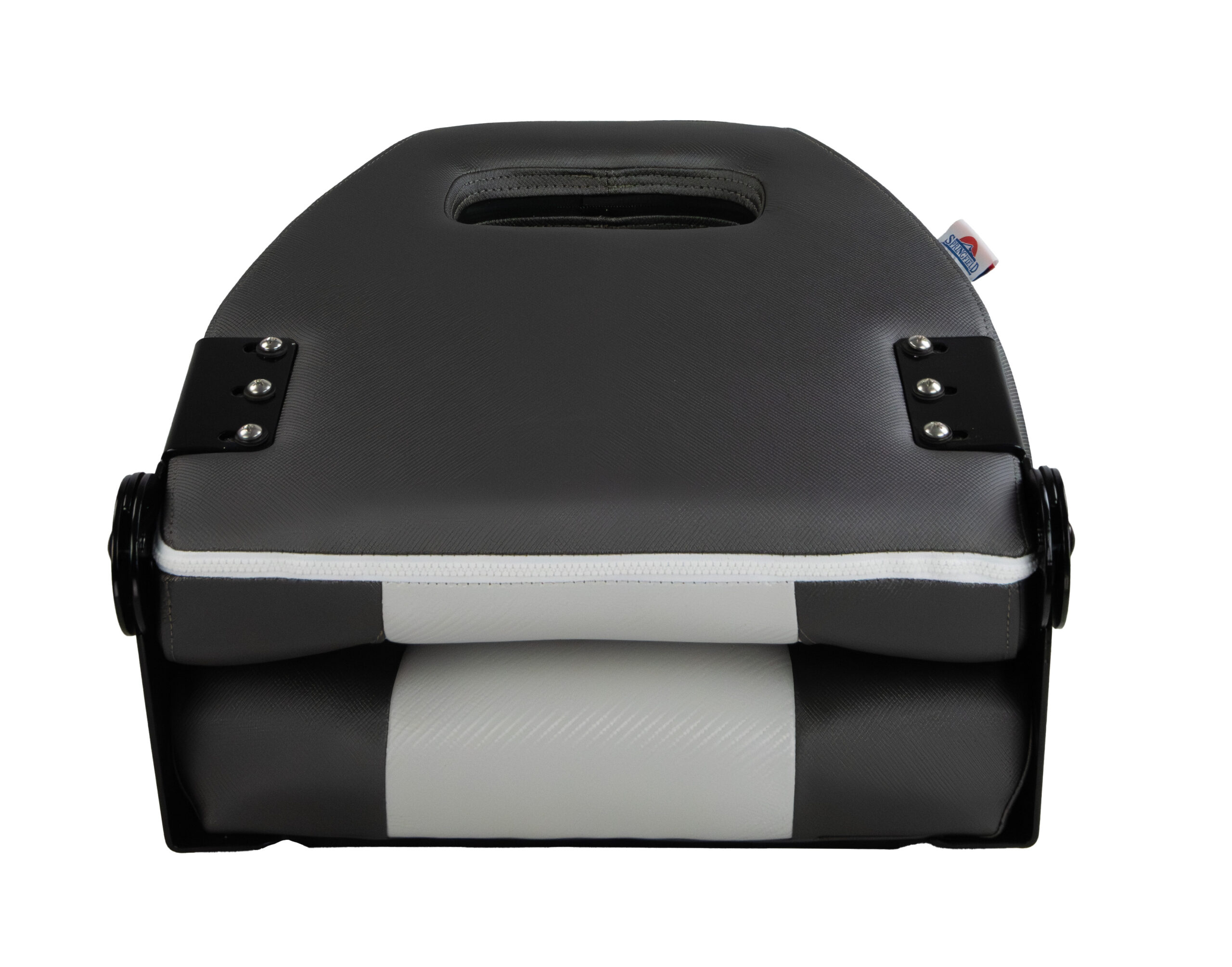 Incognito edition includes gray carbon fiber texture and white luxury UV treated marine-grade, mildew- and water-resistant vinyl upholstery. Rigid injection-molded frame with high-density foam padding, featuring a keyhole accent in backrest. Heavy-duty pinchless hinges. Universal 5″ x 5″ and 5″ x 12″ mounting pattern.