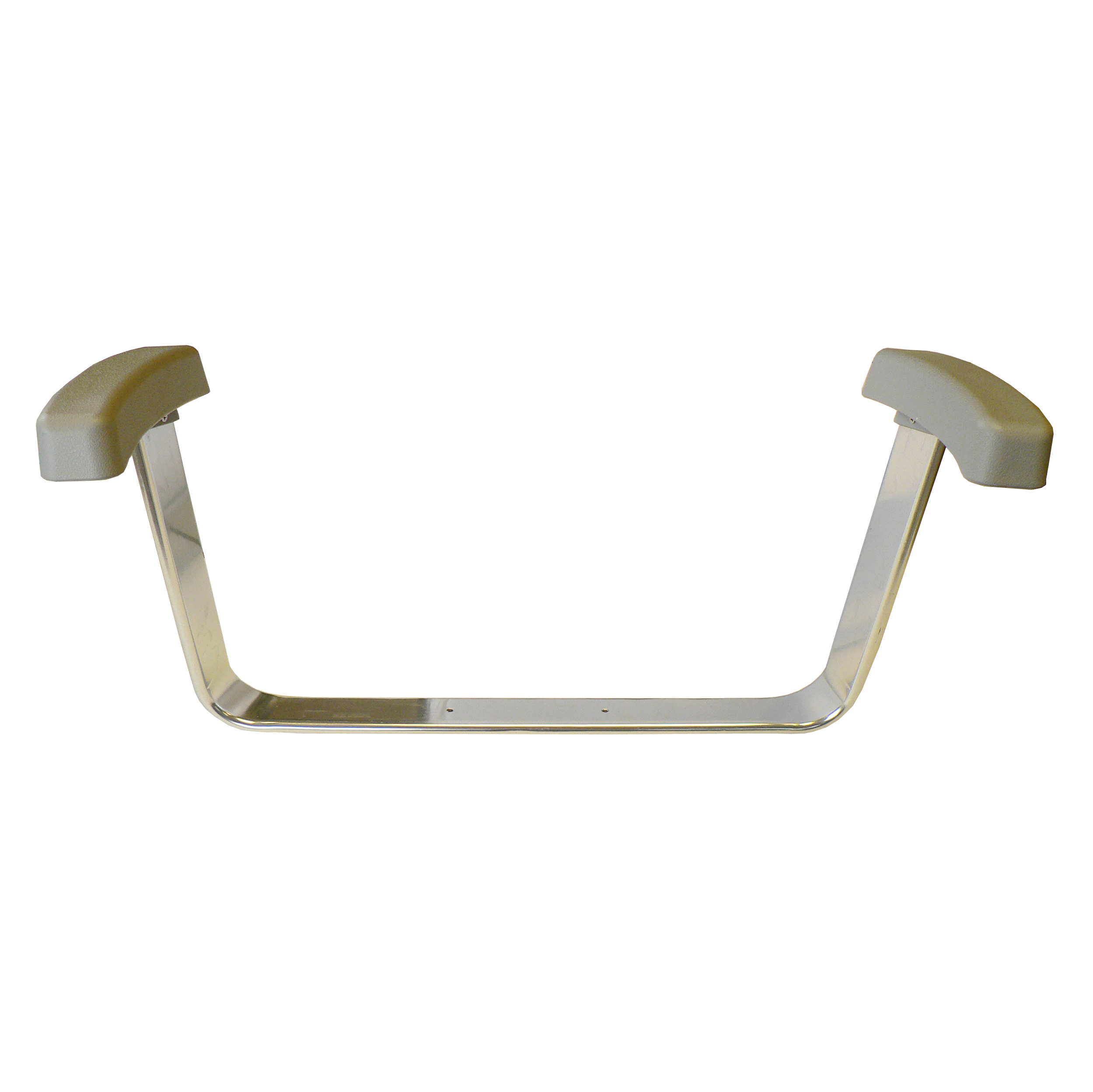 Sturdy polished aluminum with plastic armrest. One-piece construction provides added stability and strength.