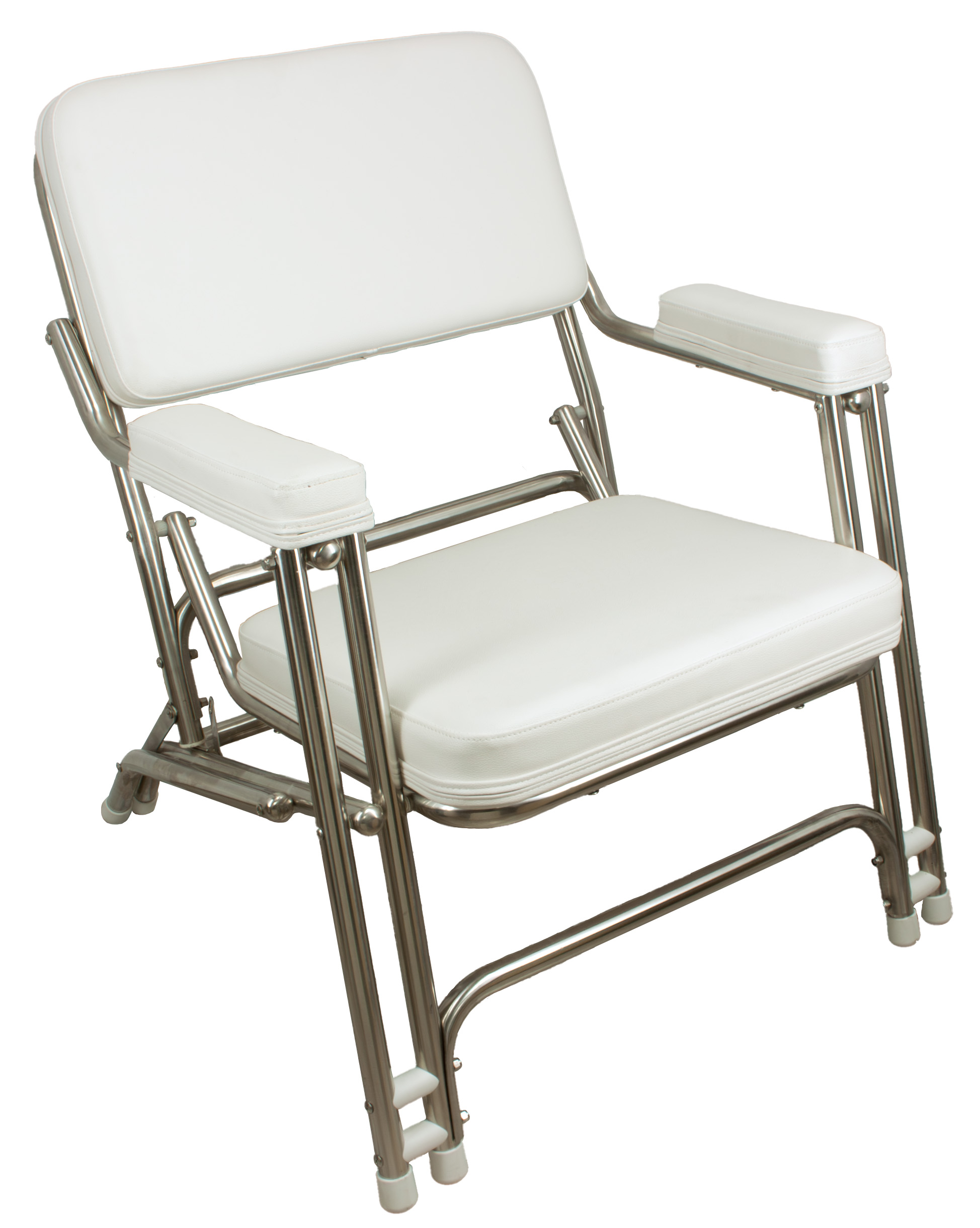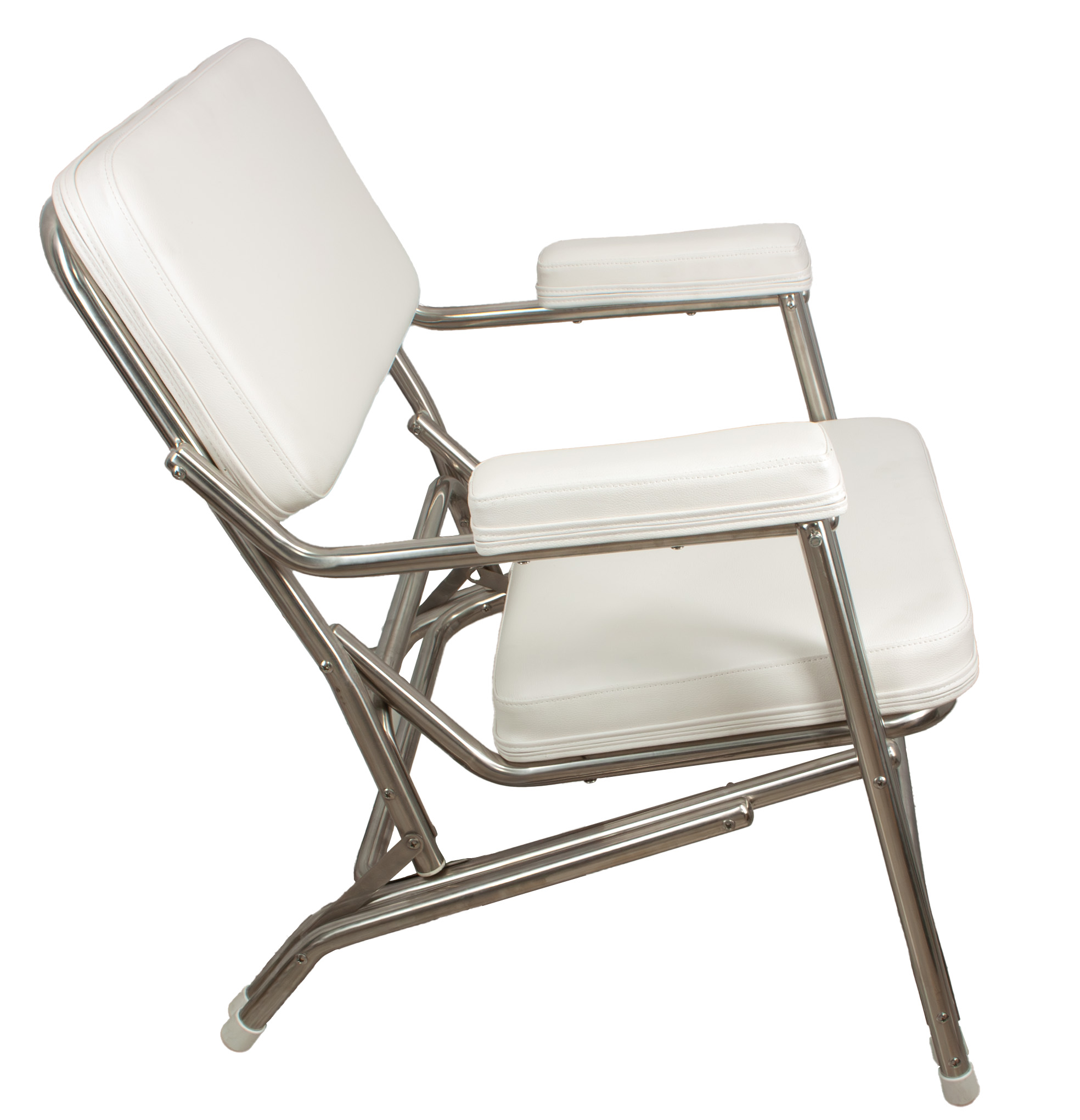 Dual 1″ stainless steel tubing, eight-legged frame with rubber capped feet supports a durable plastic substrate. Weather-resistant marine-grade vinyl over extra thick padding. Premium padded foam Armrests with cup holder. Folds down easily for transportation.