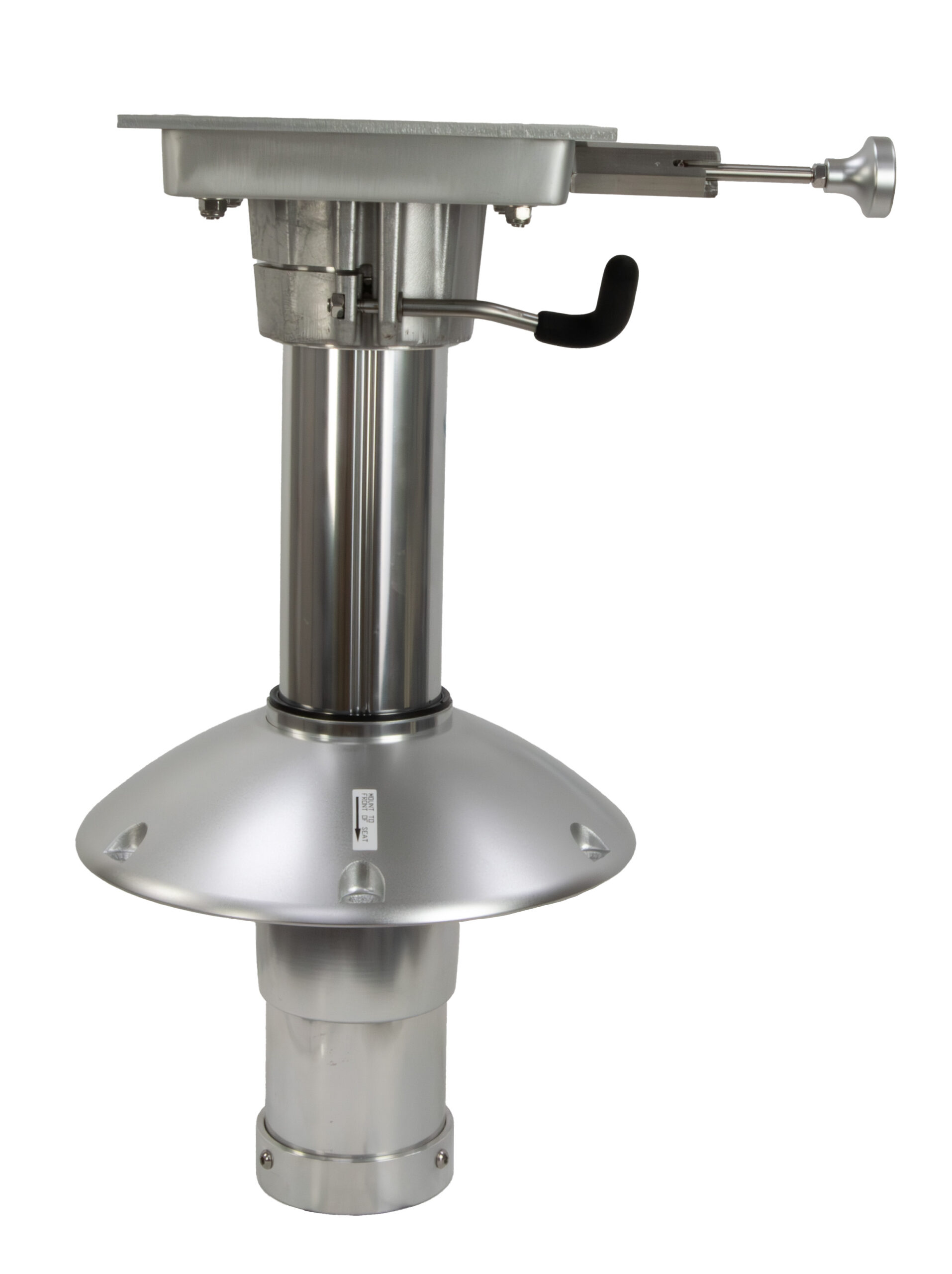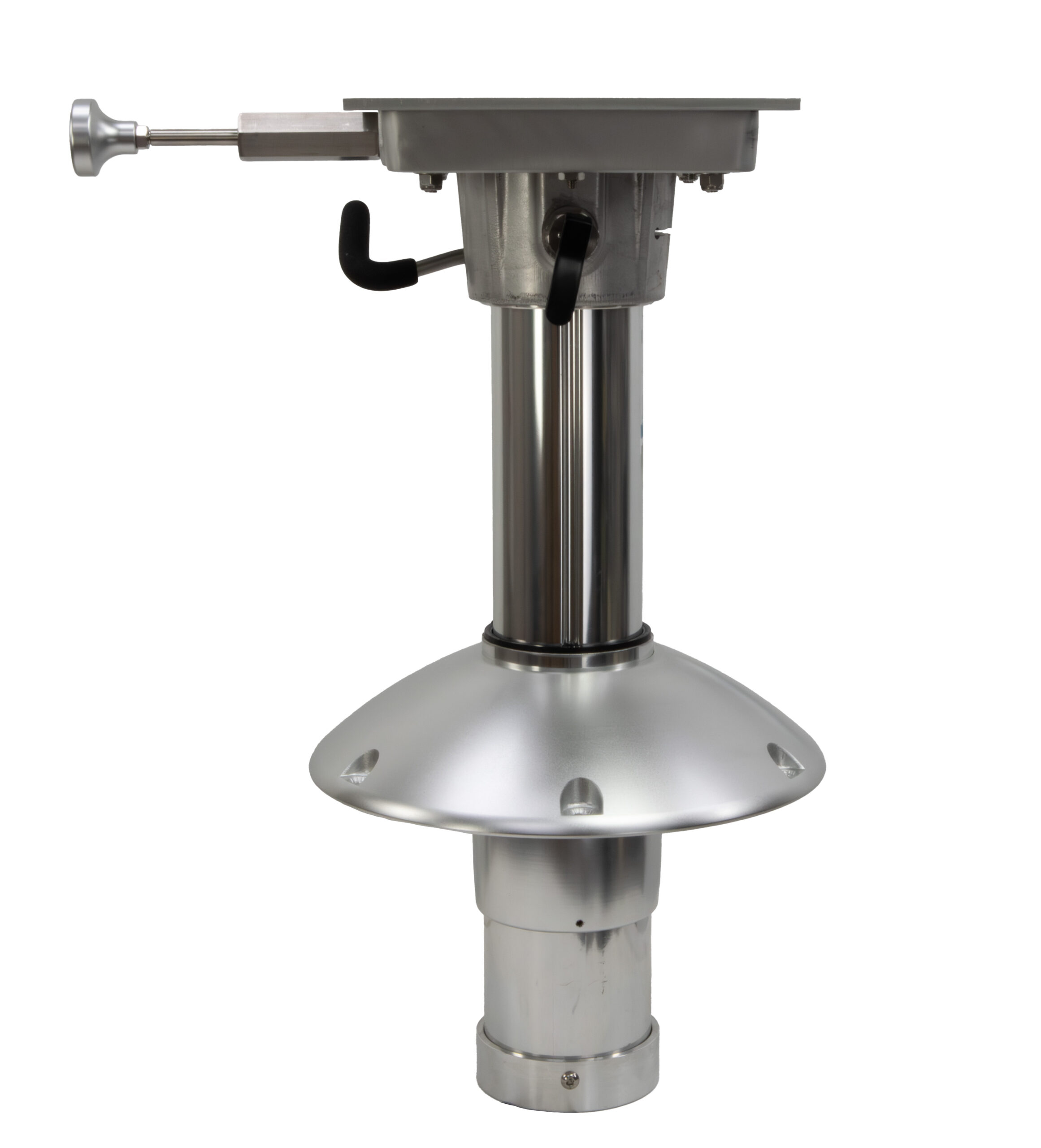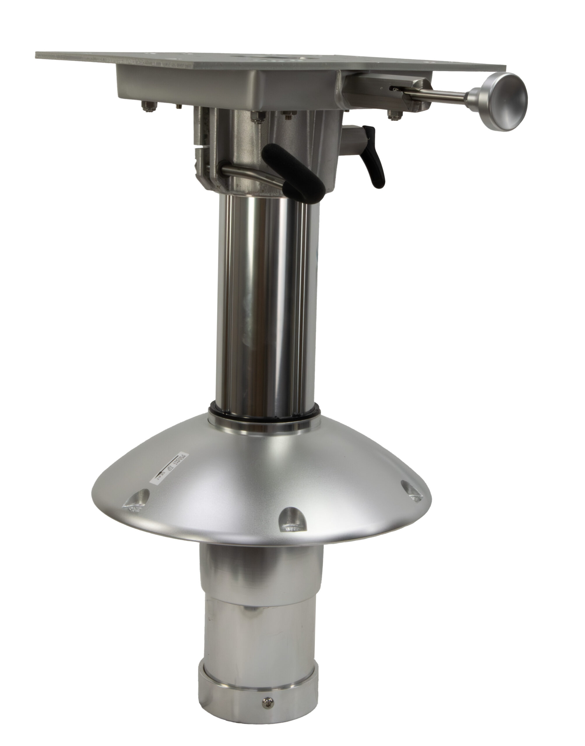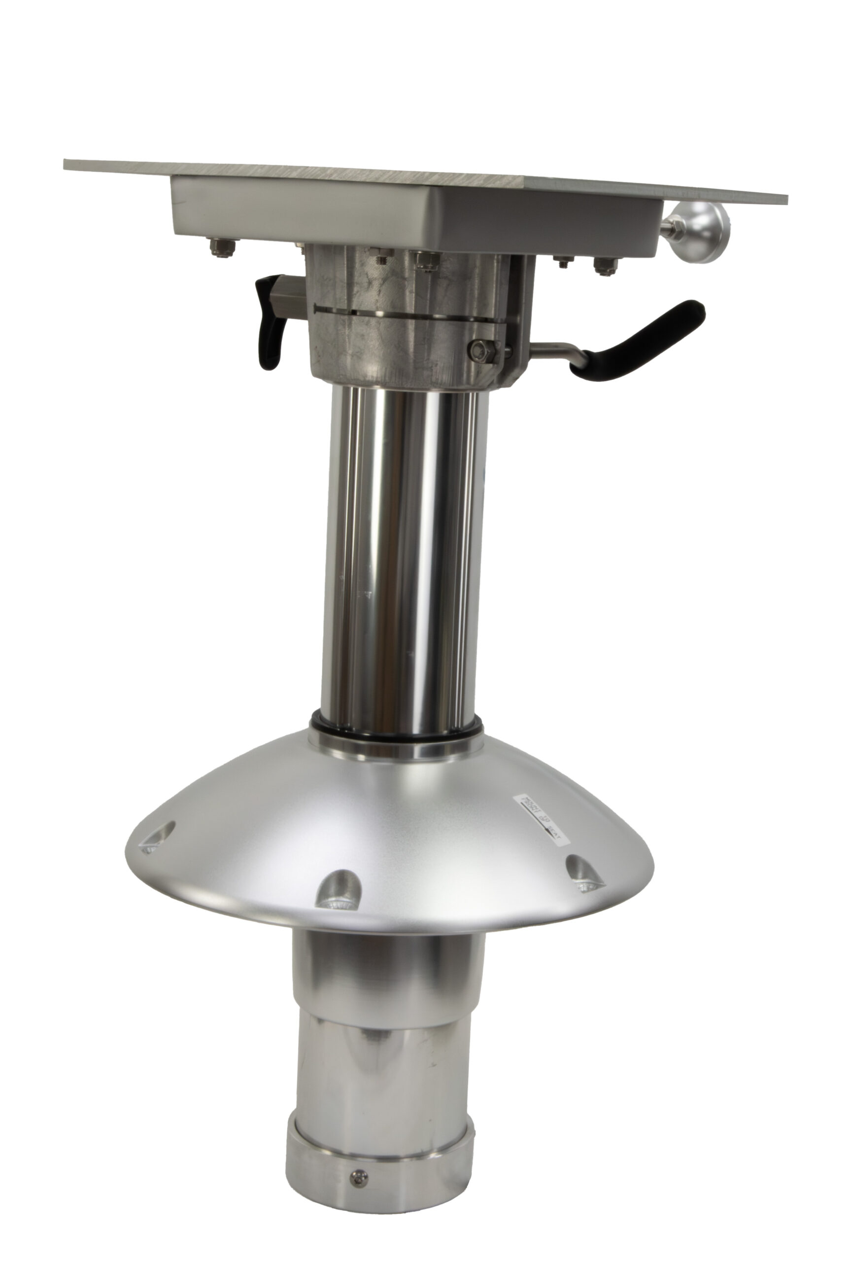 Proven mechanical spring and shock technology in a traditional pedestal configuration. Wave dampening pedestal reduces the impact caused by harsh waves. Thick wall (.213) post allows 5-1/2″ of vertical travel. Requires 8″ below deck.