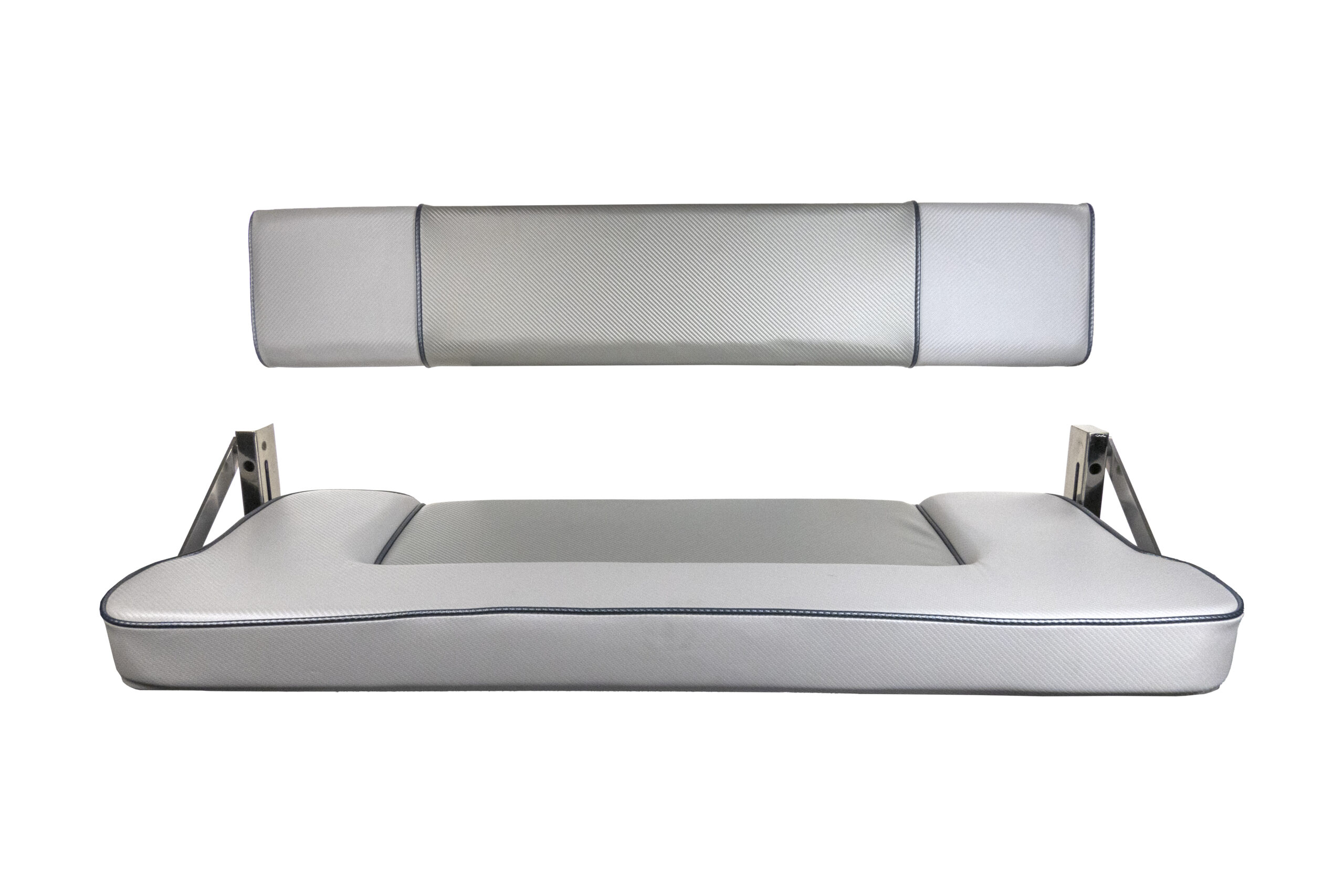 Simply lift back of seat and fold down for easy storage. Includes a stainless steel frame, foam cushion with marine-grade vinyl.