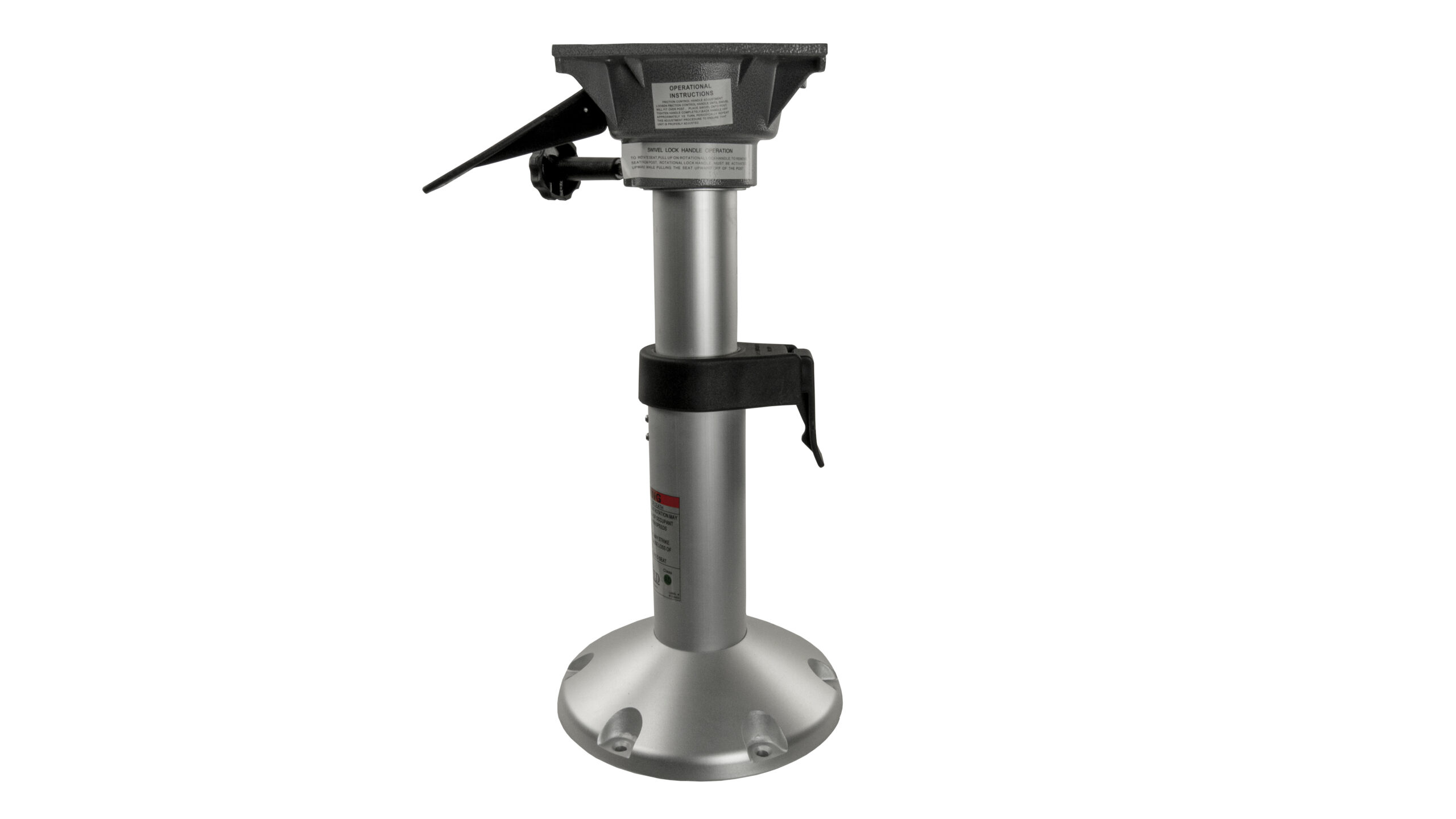 Package includes Trac-Lock™ locking swivel and adjustable 2-7/8″ post with 9″ round base. Anodized post is 2-7/8″ adapter with inner 2-3/8″ post. Proprietary posi-lock system. Adjusts in 1″ incriments.