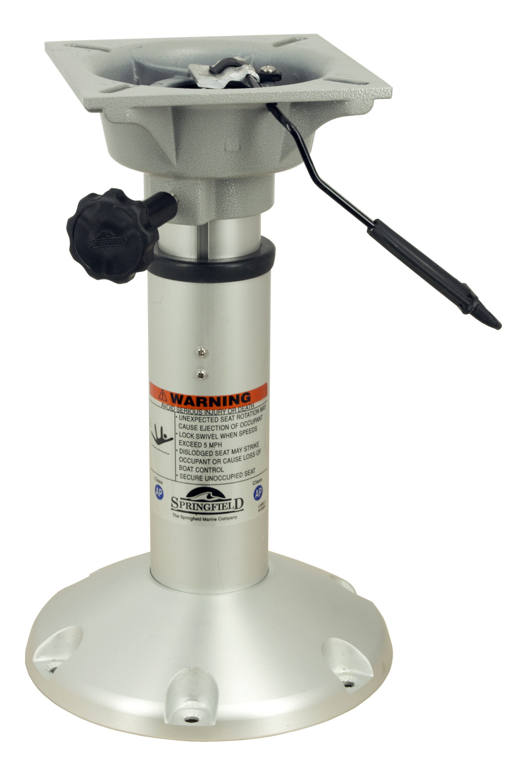 Package includes 2-3/8″ high-strength anodized aluminum air-powered height adjustment pedestal (500 newton cylinder) with 9″ round anodized base, and non-locking Trac-Lock™ swivel.