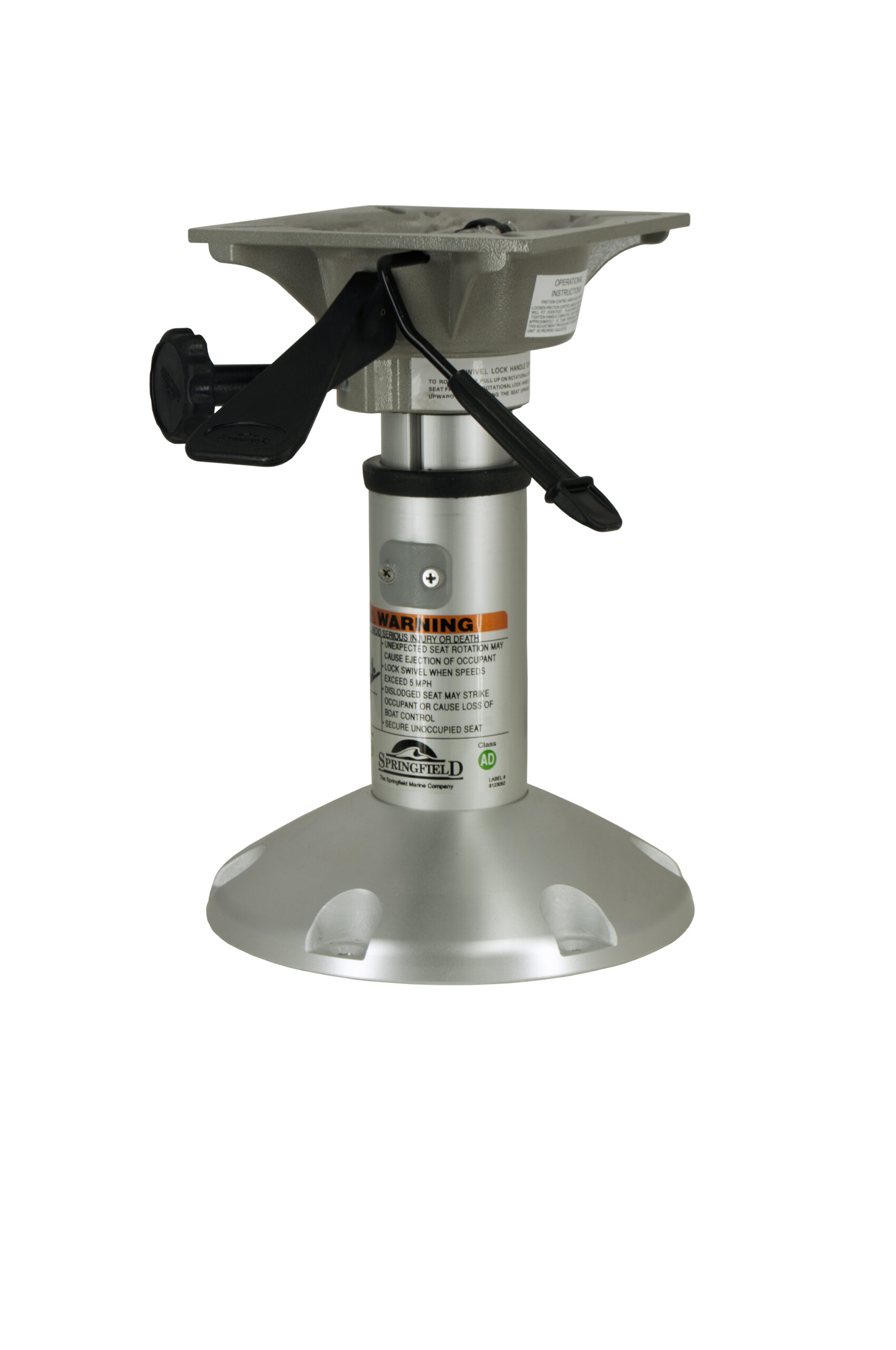Package includes 2-3/8″ high-strength anodized aluminum air-powered height adjustment pedestal (500 newton cylinder) with 9″ round anodized base, and locking Trac-Lock™ swivel.