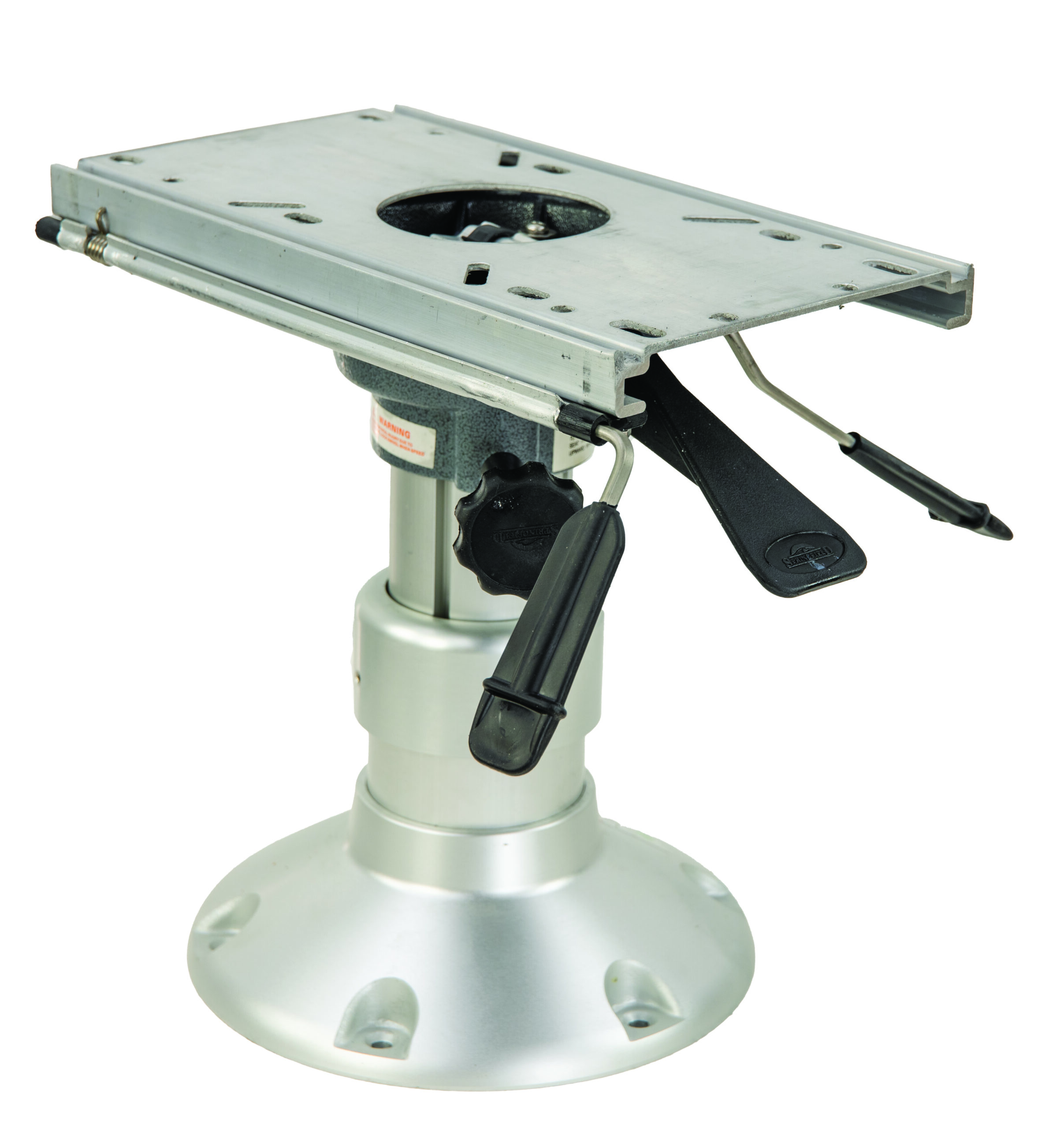 Package includes 2-7/8″ high-strength rigid 4-keyed anodized aluminum air-powered height adjustment pedestal (500 newton cylinder) with 9″ round anodized base, and locking Trac-Lock™ swivel & slide. 3-1/2″ outer post with 2-7/8″ inner post.