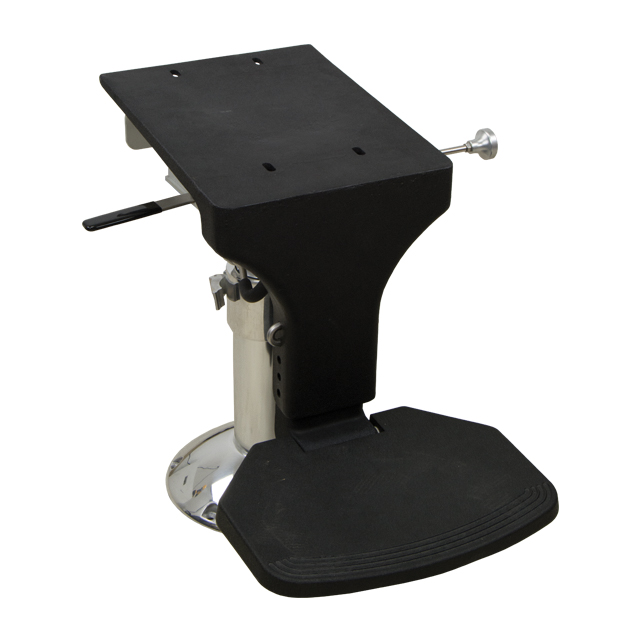 Package includes 4″ air-ride Mariner II slide & swivel with anodized finish, adjustable brite dip 4″ pedestal with 12″ round polished base. 650 Newton air cylinder provides height adjustment. Seat mounting footrest offers adjustable height and flips-up out of the way. Pedestal adjusts 18″ to 28″. Overall height 22″ to 32″.