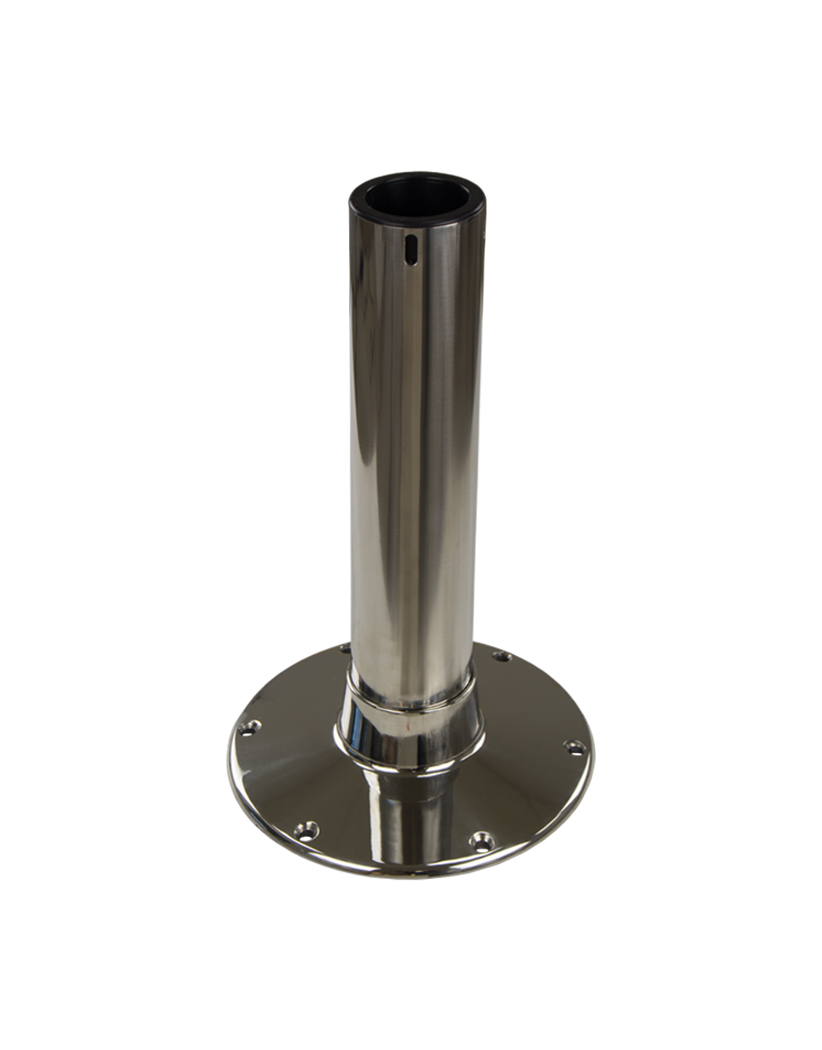 316 Stainless steel 2-7/8″ post of heavy-duty thick wall construction with #8 mirror finish. Polished cast 9″ round stainless steel base welded to post for maximum strength. Use with any 2-7/8″ Trac-Lock™ locking slide or swivel (sold separately).