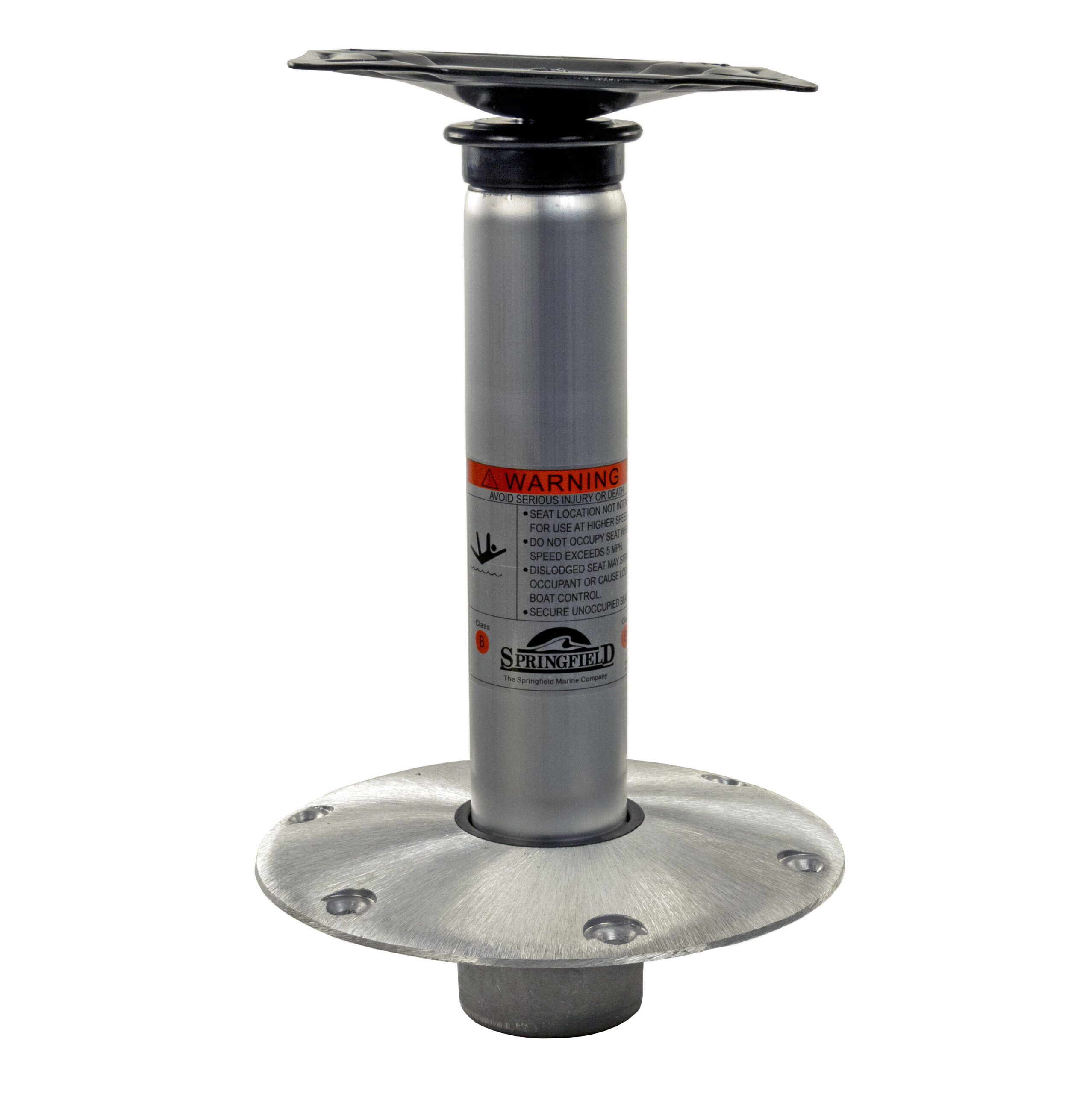 Hi-Lo 3-piece package includes Plug-In™ Hi-Lo swivel seat mount, Plug-In™ Hi-Lo fixed height post with anodized finish, and Plug-In™ 9″ diameter base with satin finish.