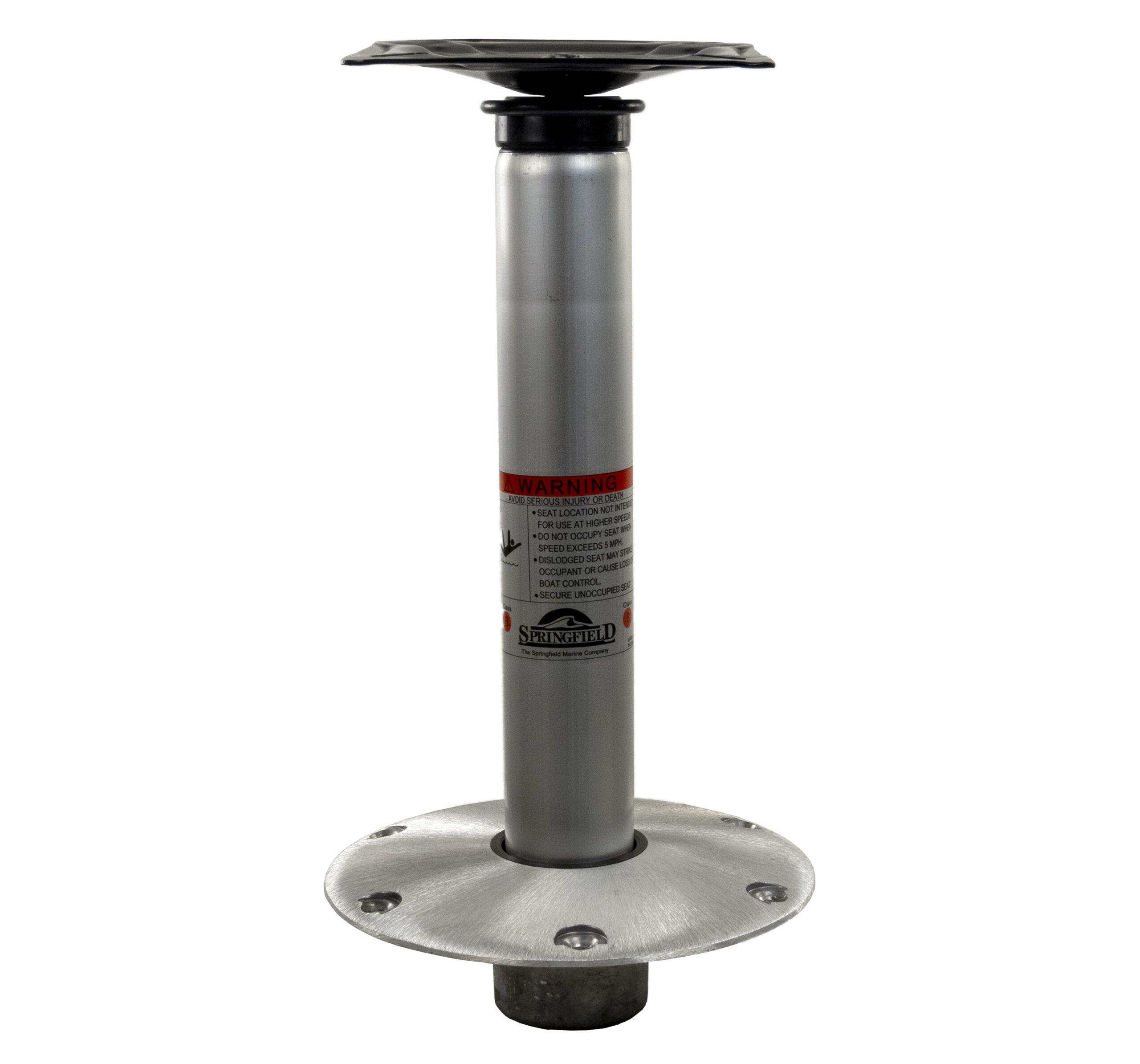 Hi-Lo 3-piece package includes Plug-In™ Hi-Lo swivel seat mount, Plug-In™ Hi-Lo fixed height post with anodized finish, and Plug-In™ 9″ diameter base with satin finish.