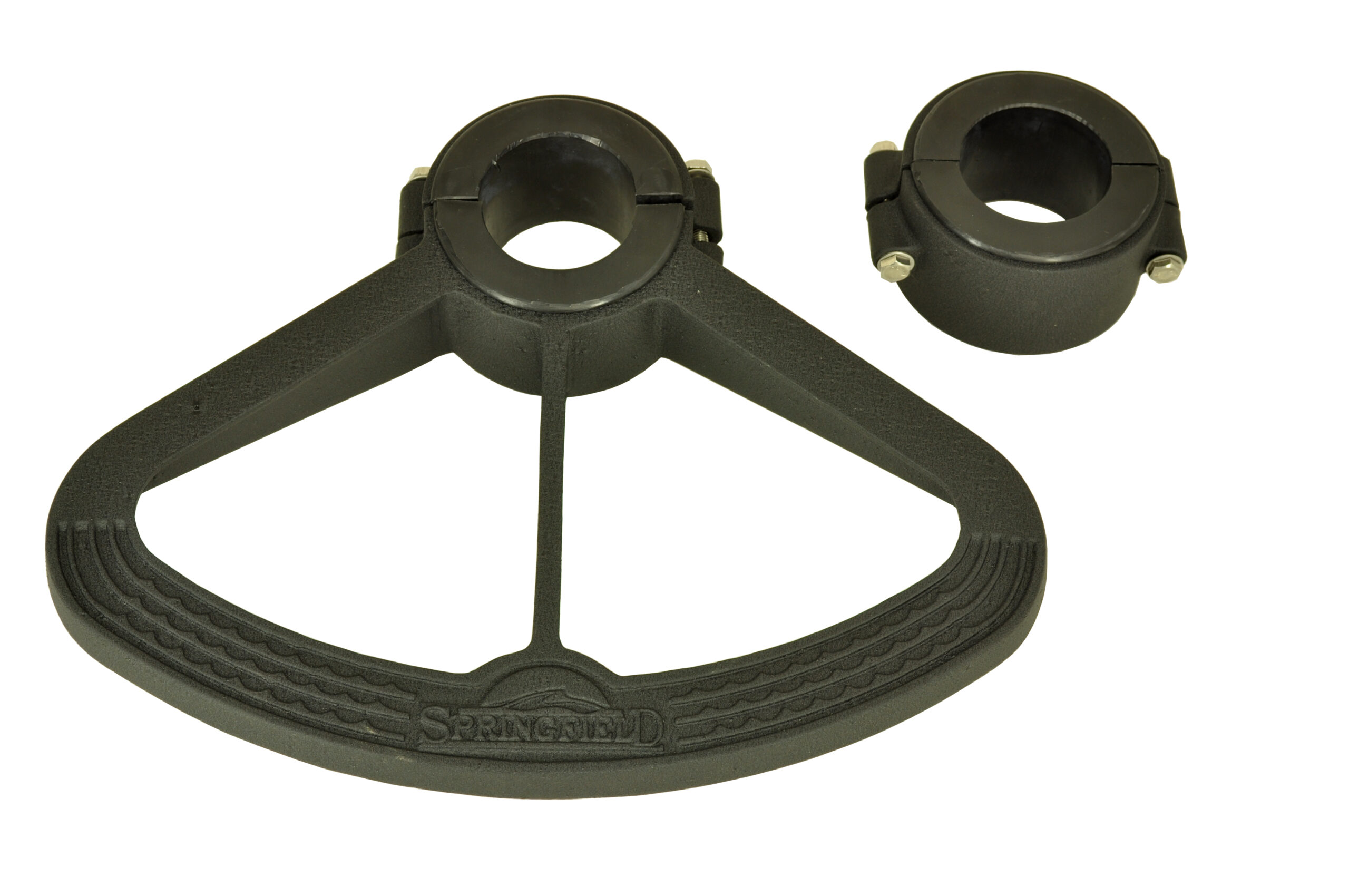Footrest easily mounts to several sized pedestals. Split design allows mounting without removing seat. Internal composite thin bushing prevents scratching of pedestal.