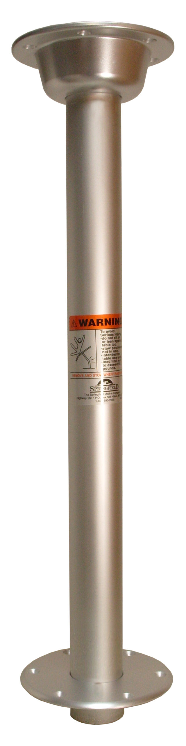 Package includes 2-3/8″ diameter aluminum 30″ non-locking post, High-strength aluminum table mount (#3660018), and 7″ aluminum surface mount floor base with a 5-3/4″ hole pattern (#3660017). Requires a 3-1/2″ hole in deck.