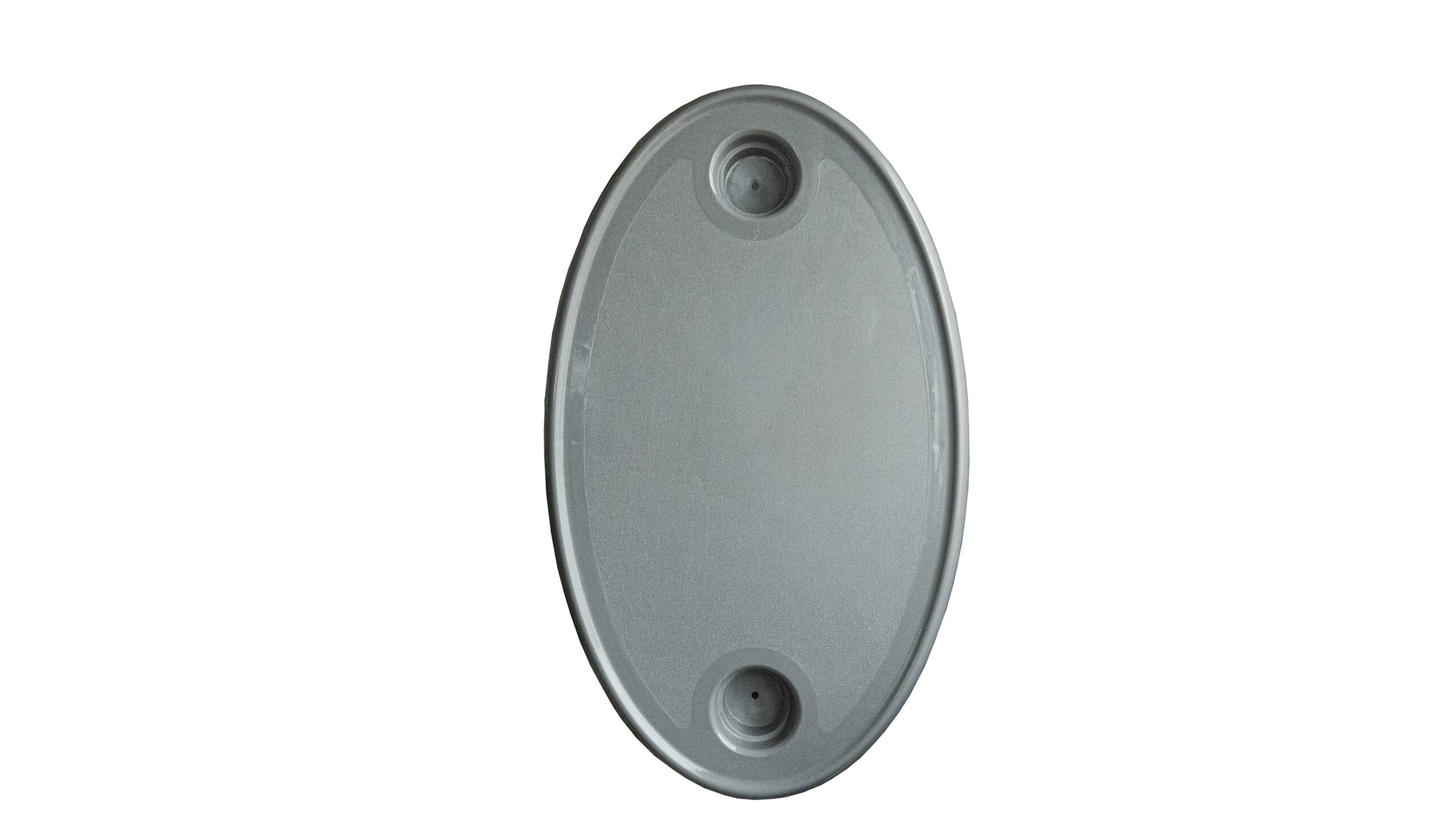 Lightweight molded heavy-duty marine-grade plastic 30″ x 18″ oval table top with umbrella socket.