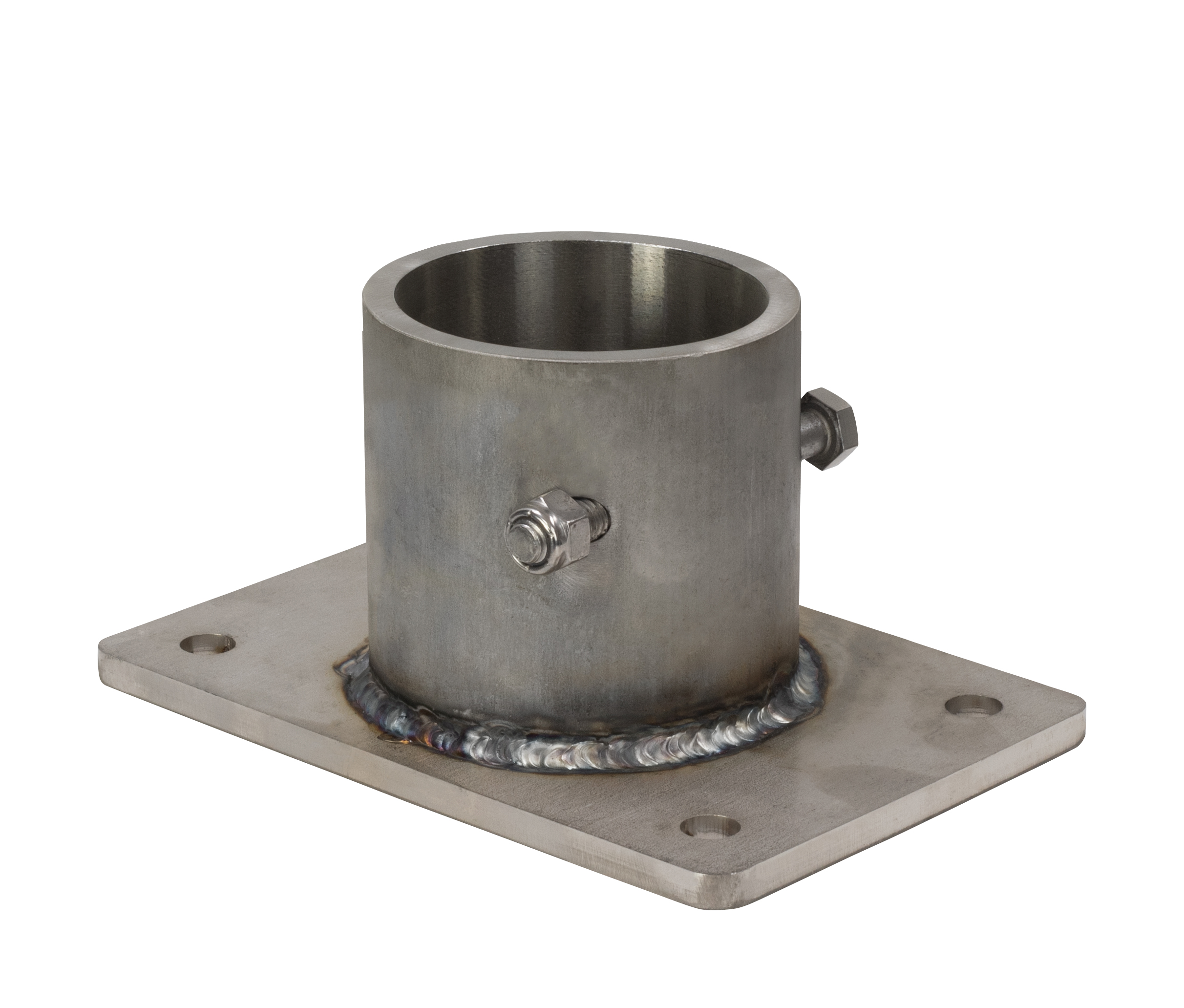 Fabricated stainless steel receiver for 2″ ski tow pylon.