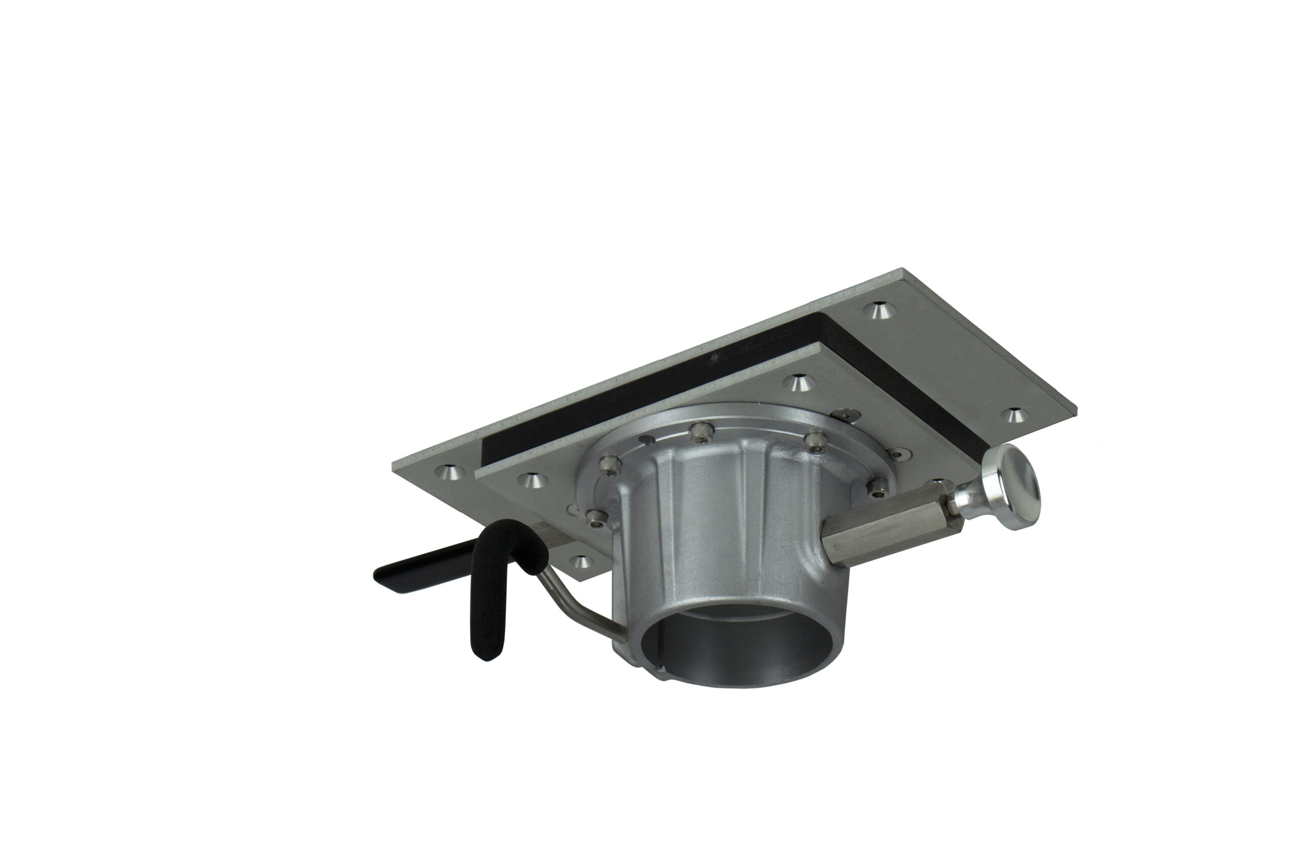 10-1/2″ x 14-1/2″ x 1/4″ aluminum formed slide plate. Heavy-duty stainless steel lock pin. Anodized aluminum. Large easy-to-reach control knobs and swivels on post. Slide travels 6″ fore and aft. Flip handle for locking pin.
