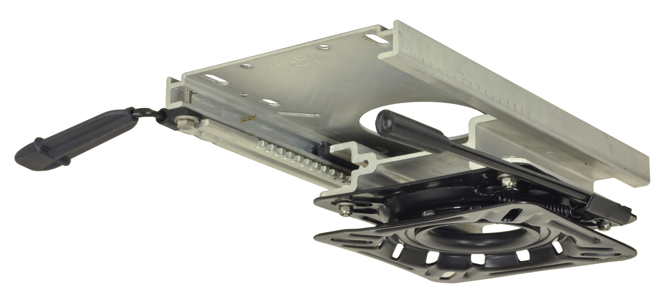 Large 7-1/4″ x 13″ x 3″ platform travels 5-1/2″ fore and aft. Mounted E-coat 12-way swivel rotates 360°. Patent #5,782,451