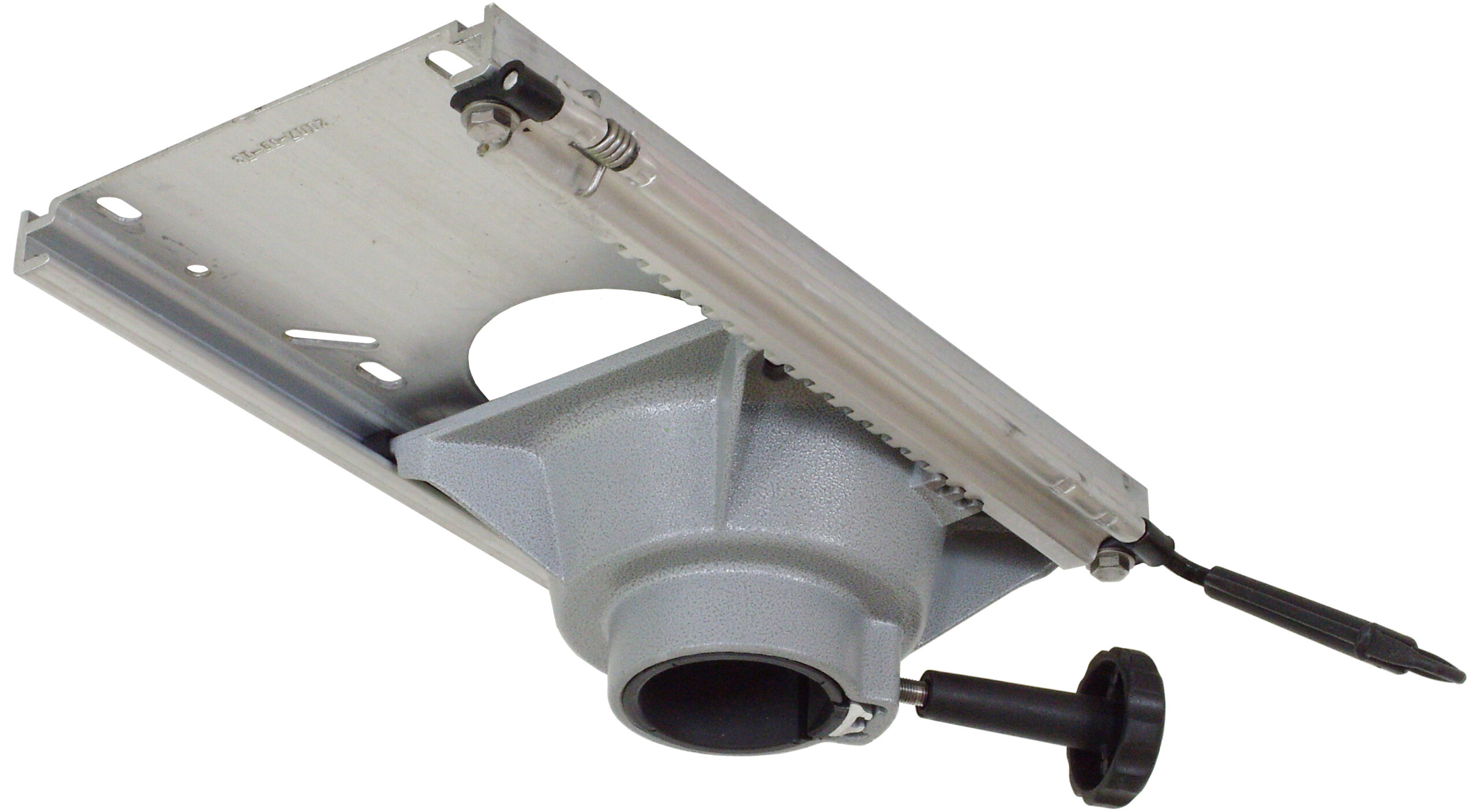 Large 7-1/4″ x 13″ high-strength anodized aluminum platform travels 5-1/4″ fore and aft on self-lubricating pads. Rotates 360°. Centrally located locking handle that is easily reachable with left or right hand. Adds 1-1/4″ of height to pedestal.