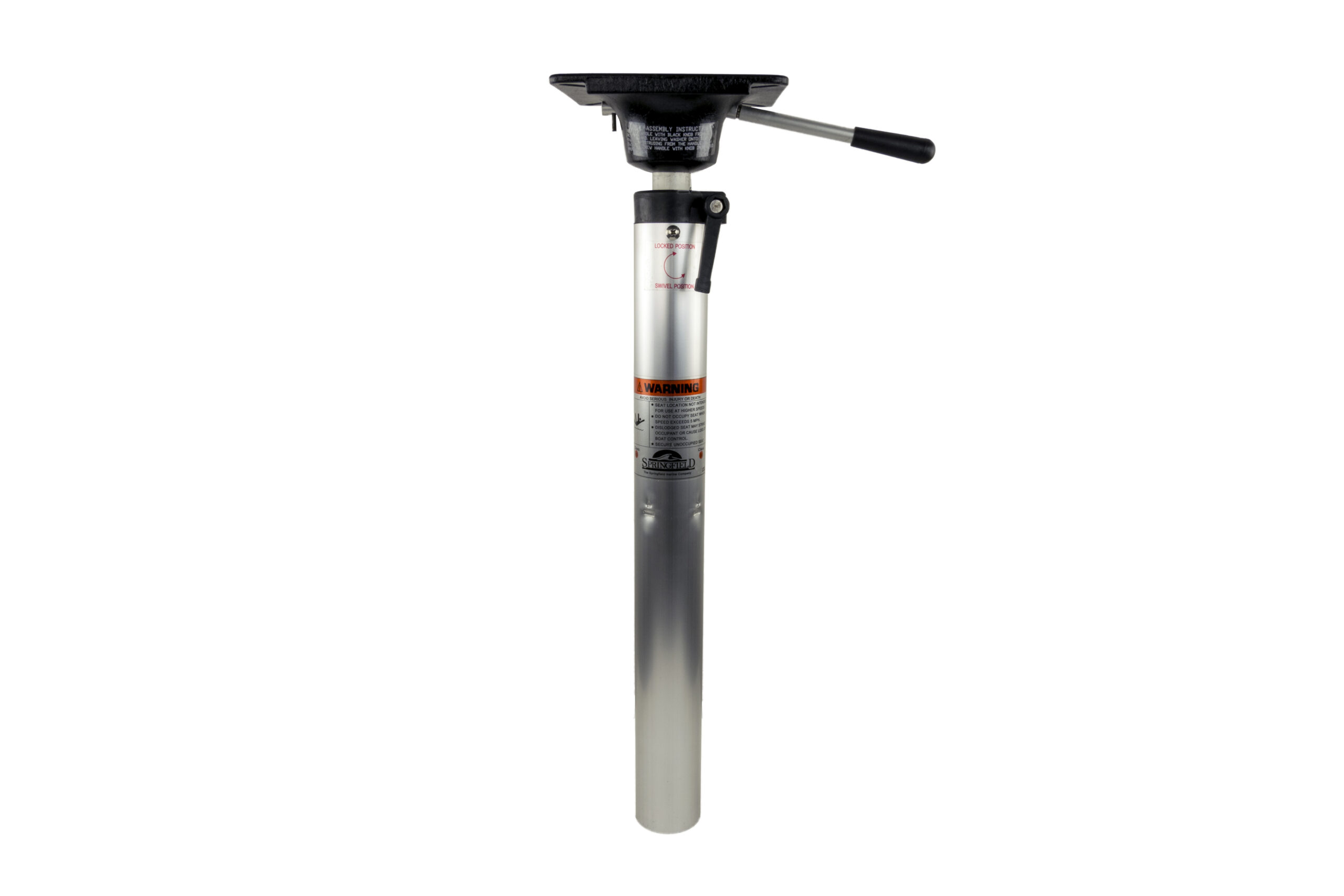 Anodized aluminum post can be locked in position to prevent rotating or unlocked to rotate freely. Provides safe stable seating. Fits any 2-3/8″ Plug-In™ base (sold separately). Cast aluminum seat mount with black textured powder-coated finish and aluminum capped gas cylinder inner post. 5″ x 5″ bolt pattern. 3° Degree tilt.