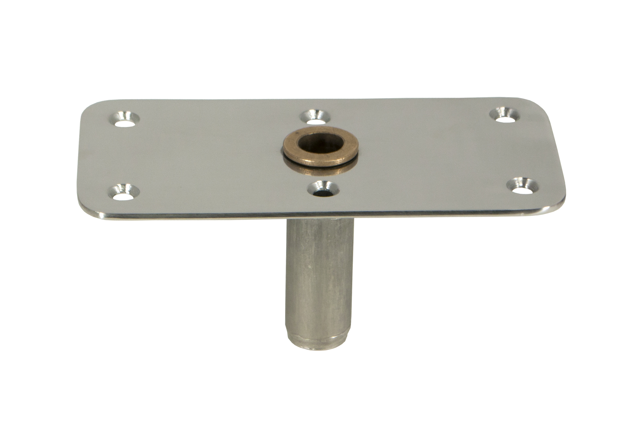 Threaded rectangular stainless steel base with polished finish. 4″ below deck needed. Requires a 2-1/2″ hole in deck. Use with any threaded KingPin™ post (sold separately). Welded stainless steel nut for optimal support.