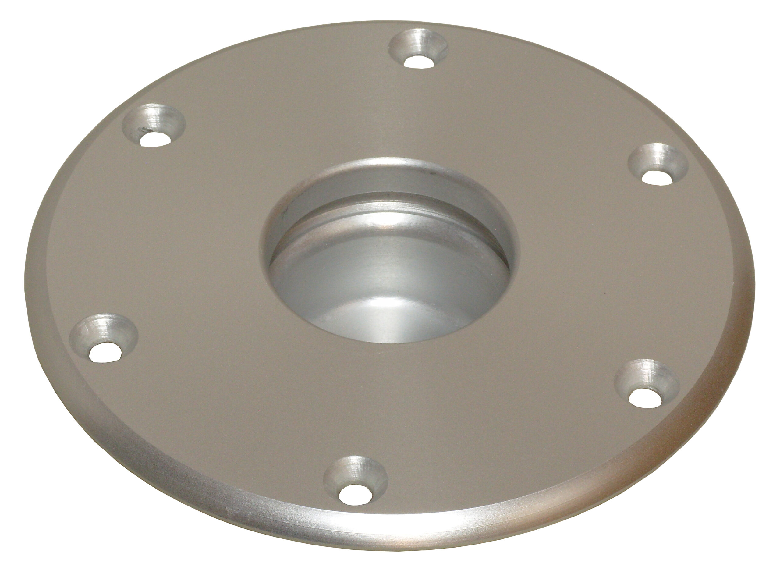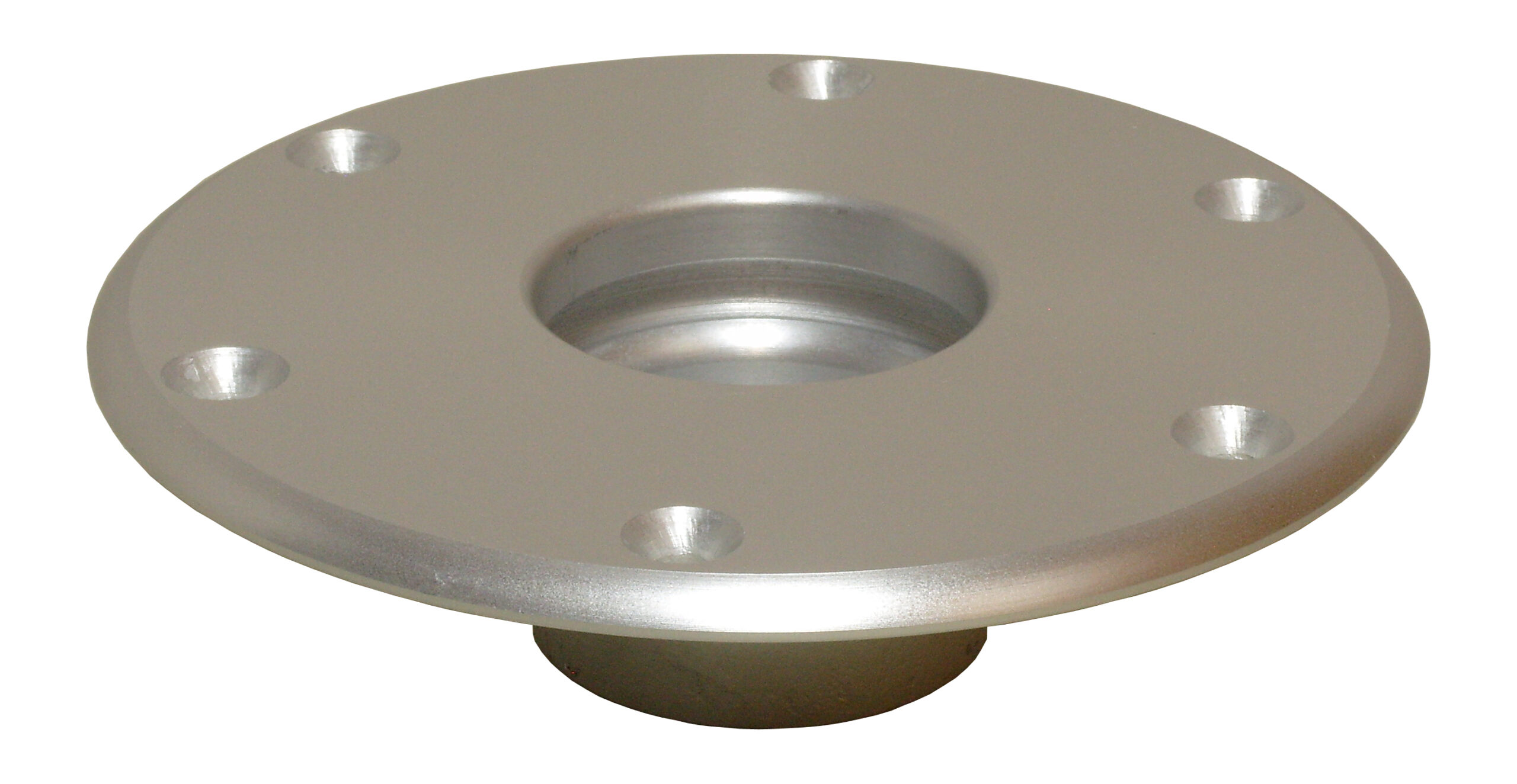7″ High-strength aluminum locking table base with 5-3/4″ hole mounting pattern in anodized finish. Works with any 2-3/8″ stowable or tapered table post (sold separately). Requires a 3.5″ hole in deck.