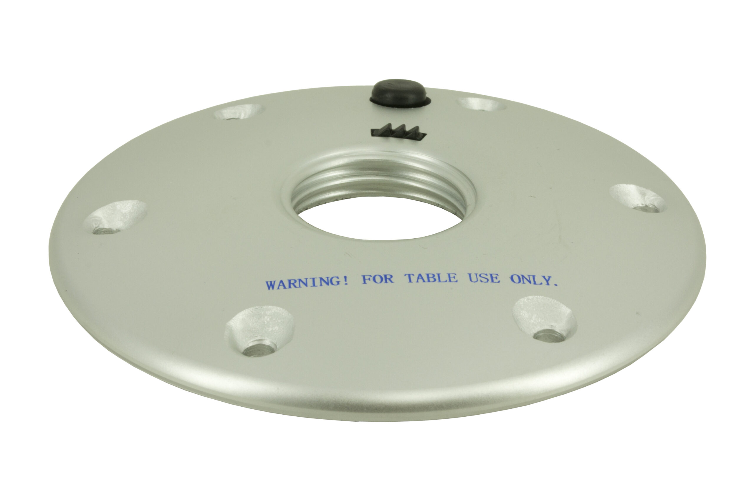 High-strength 2-3/8″ threaded anodized aluminum table base. 7″ diameter with 5-3/4″ hole pattern.