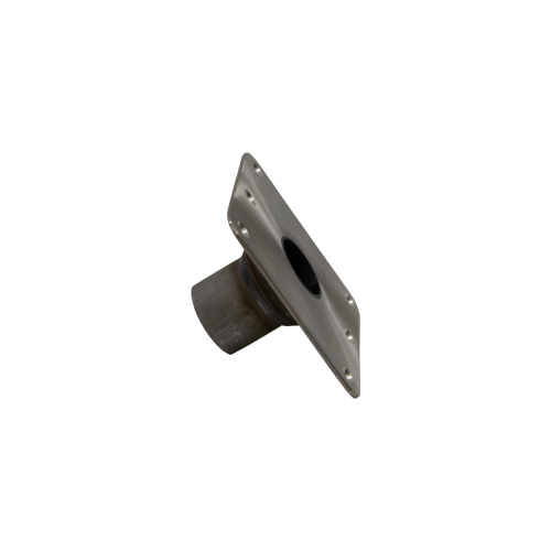 Low-profile stainless steel square deck base with satin finish for 2″ ski tow pylon.